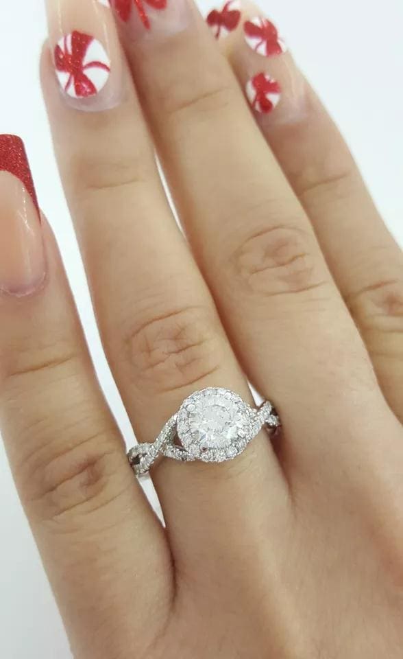 You are Purchasing a Gabriel & Co. 1.28 ctw Natural Round Brilliant Cut Diamond Crossover Engagement Ring.