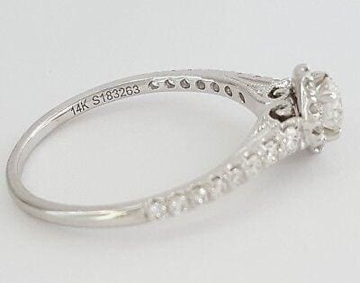 You are Purchasing a Gabriel & Co. 0.69 ct Total Weight 14K White Gold Round Brilliant Cut Diamond Halo Engagement Ring.