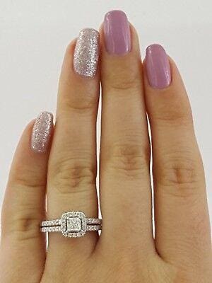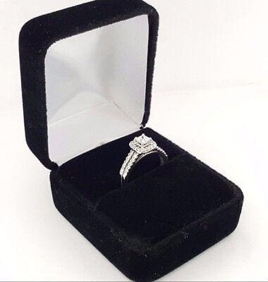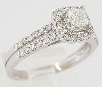 You are purchasing a 0.65 ct total weight 14K White Gold Helzberg Radiant Star Signature Square Cut Diamond Halo Engagement Ring.