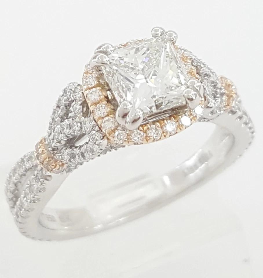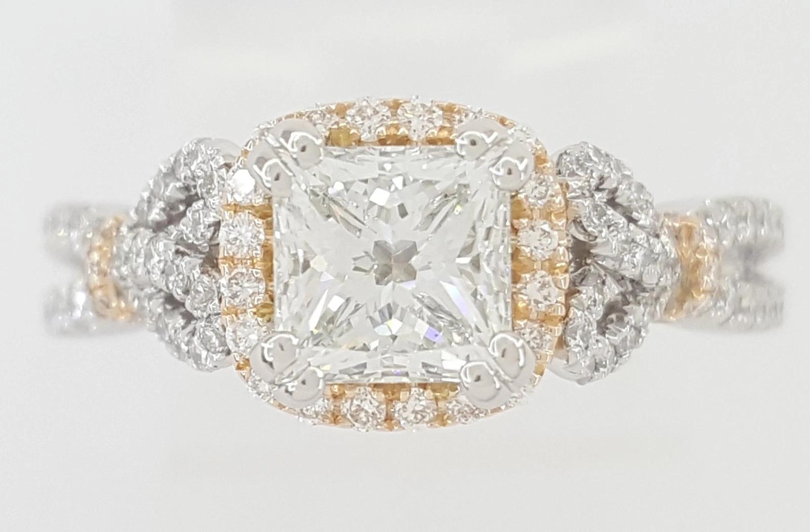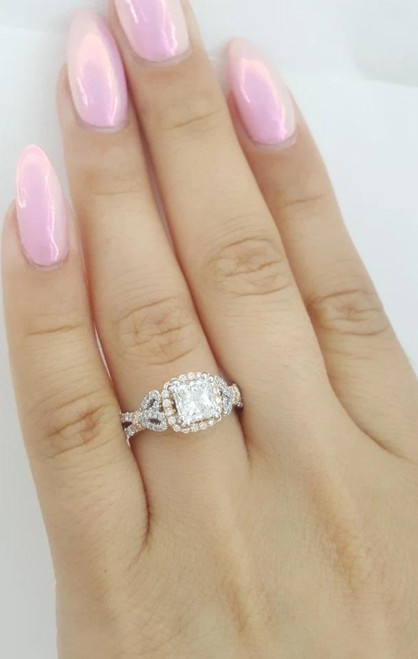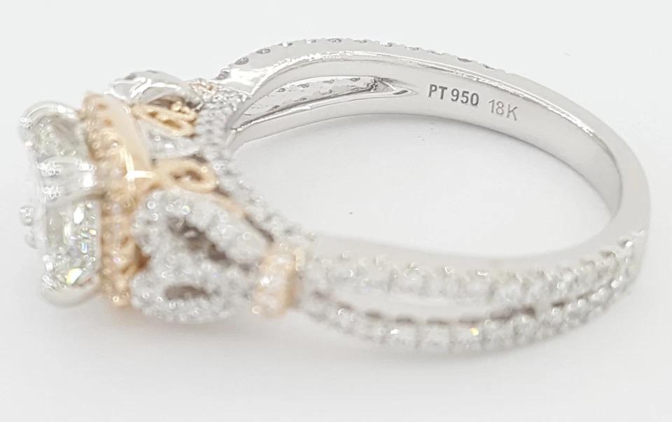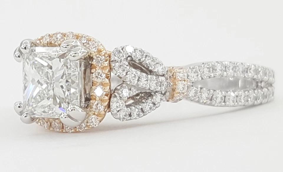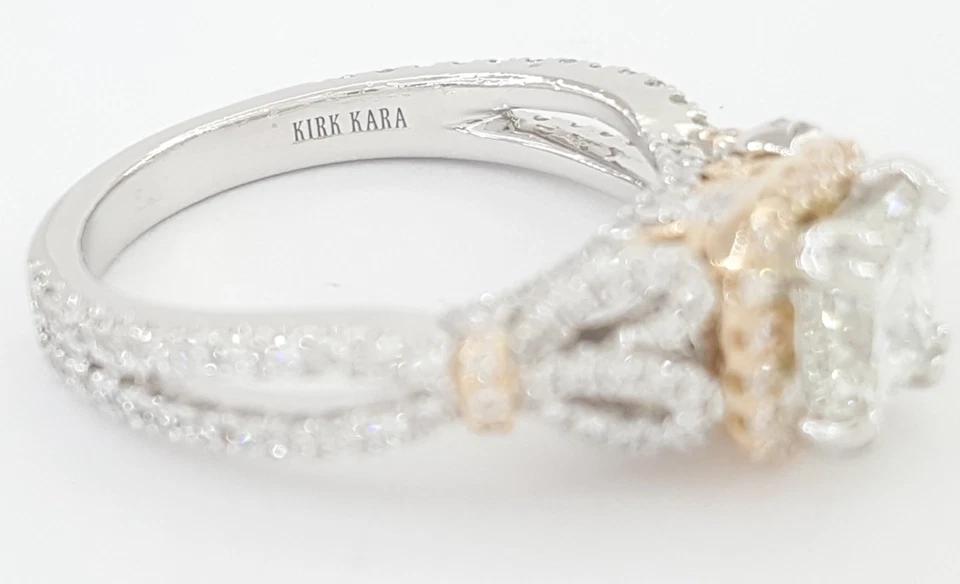 You are purchasing a Kirk Kara 1.63 ct Princess Cut Diamond Halo Engagement Ring in Platinum & 18k Rose Gold Rtl $13