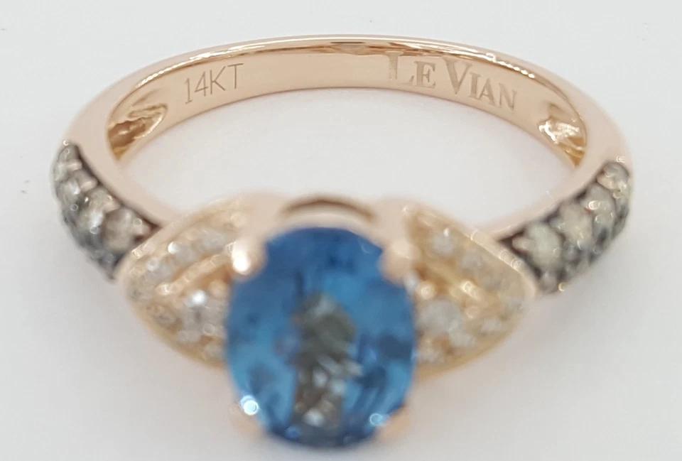 You are Purchasing a Le Vian LeVian Blue Topaz Nude & Chocolate Diamond Ring 14K Gold