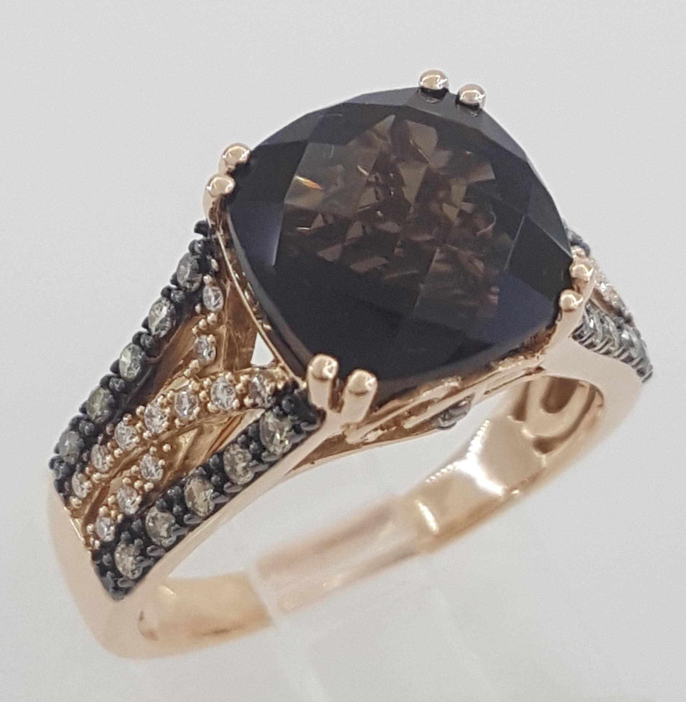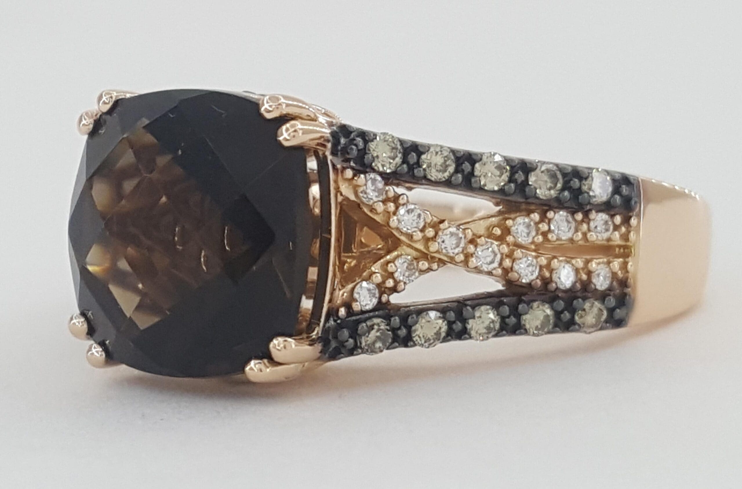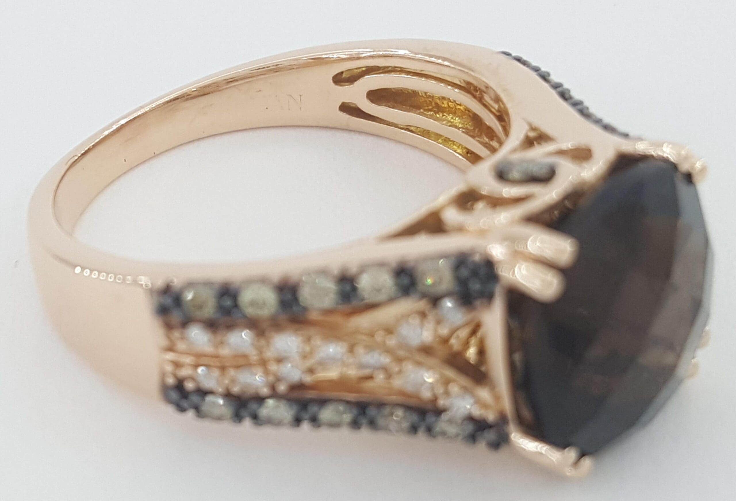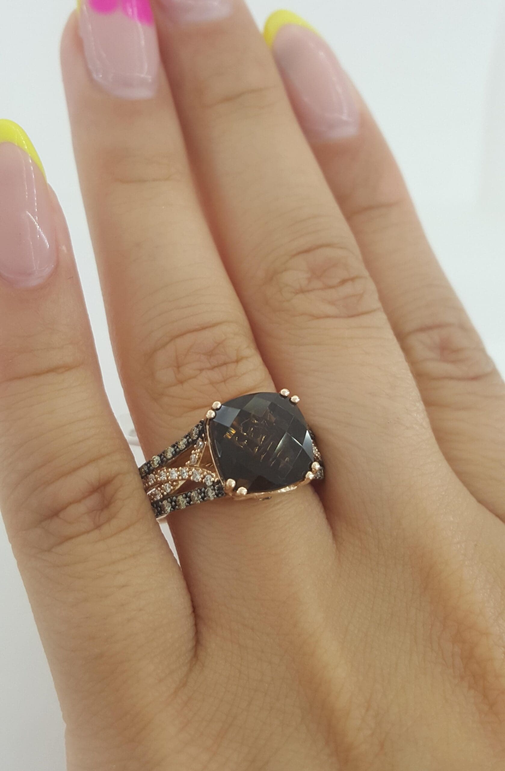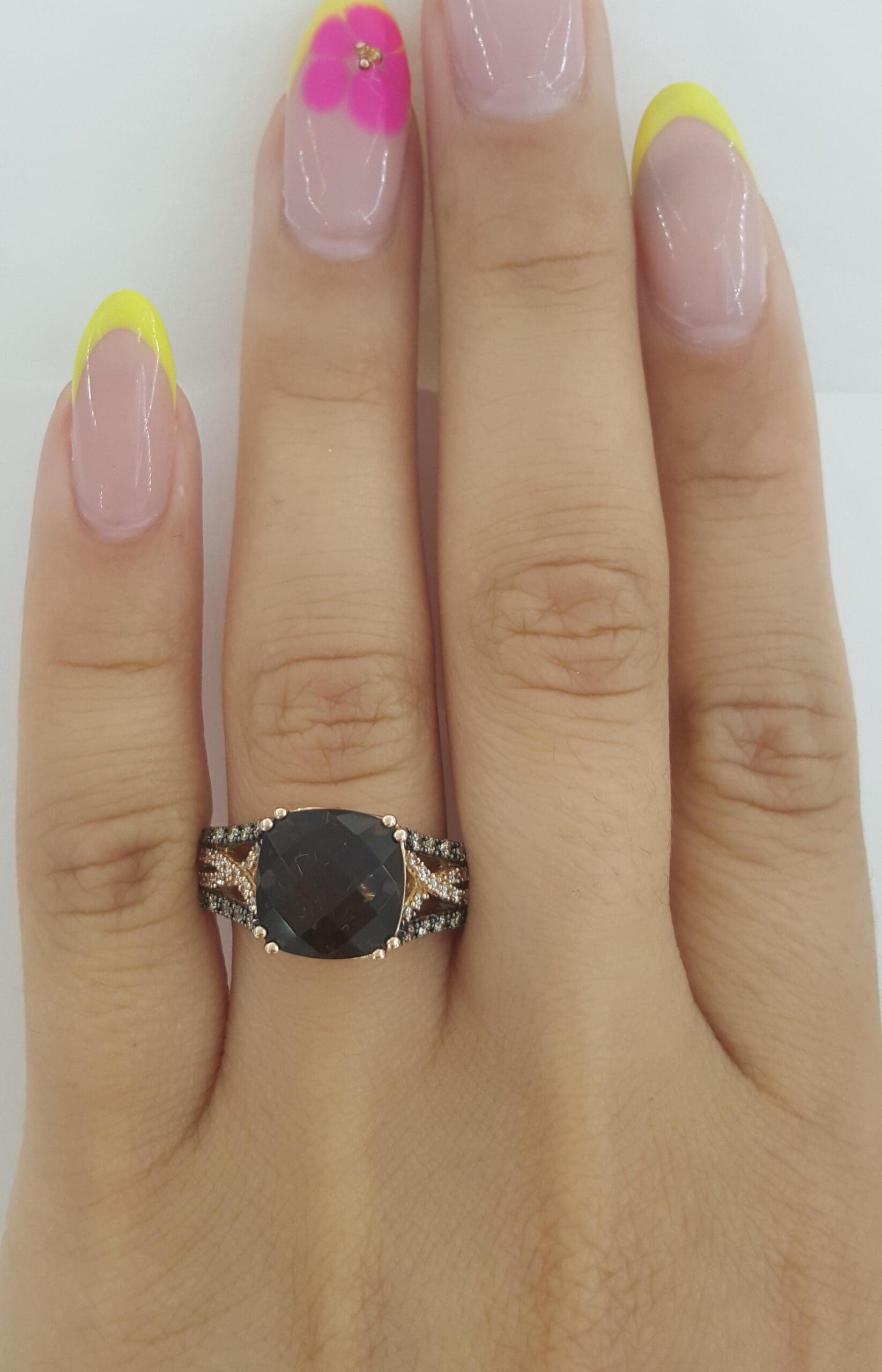 You are Purchasing a LeVian 0.75 ct Cushion Cut Quarts Nude & Chocolate Diamond Ring 14K Strawberry Gold