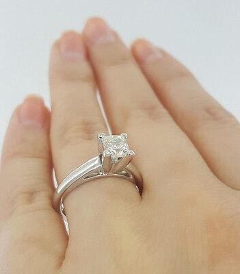 You are purchasing a 1 ct total weight 14K White Gold & Platinum Leo Princess Brilliant Cut Diamond Solitaire Engagement Ring.