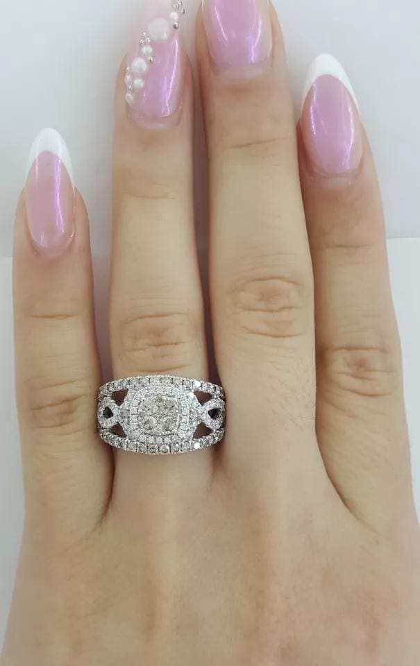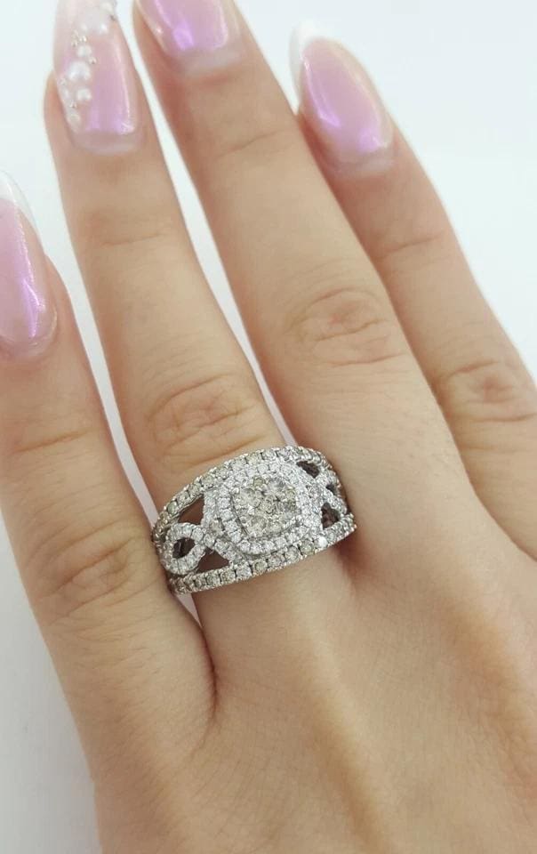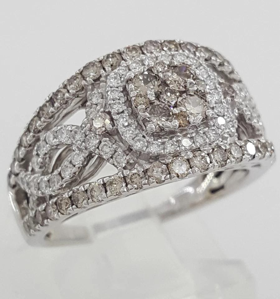 You are Purchasing a LeVian Chocolate & Nude Diamond Halo 1.2 ct Statement Ring 14K White Gold