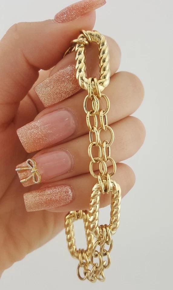 The Bracelet weighs 9 grams of 14k yellow gold, 7.75" long, 11.7 mm wide.