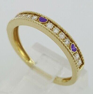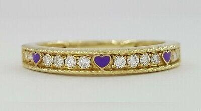 You are purchasing a 0.15 ct 14k Yellow Gold Haft Circle 12 Round Brilliant Cut Diamond & Purple Enamel Wedding Anniversary Ring / Band.