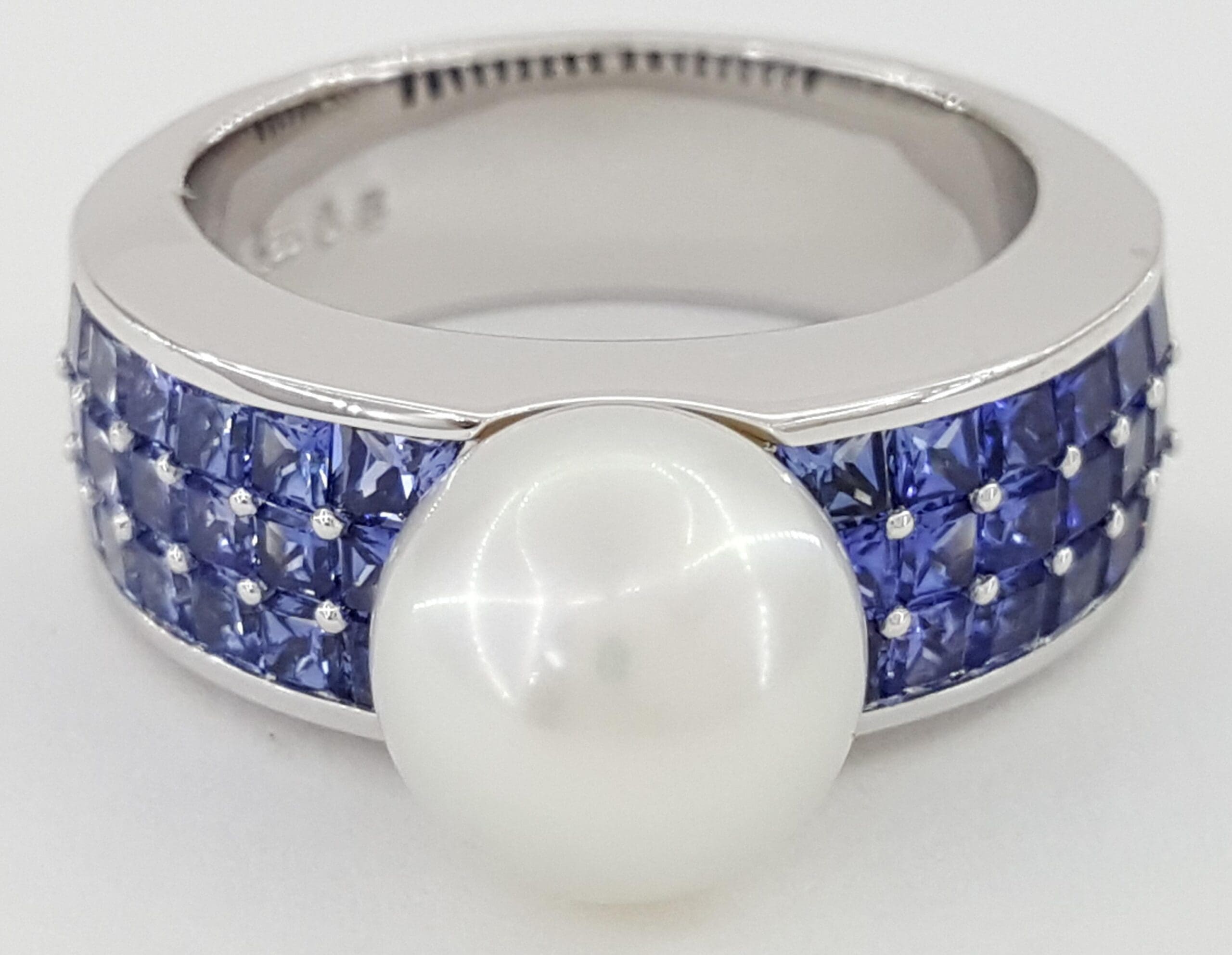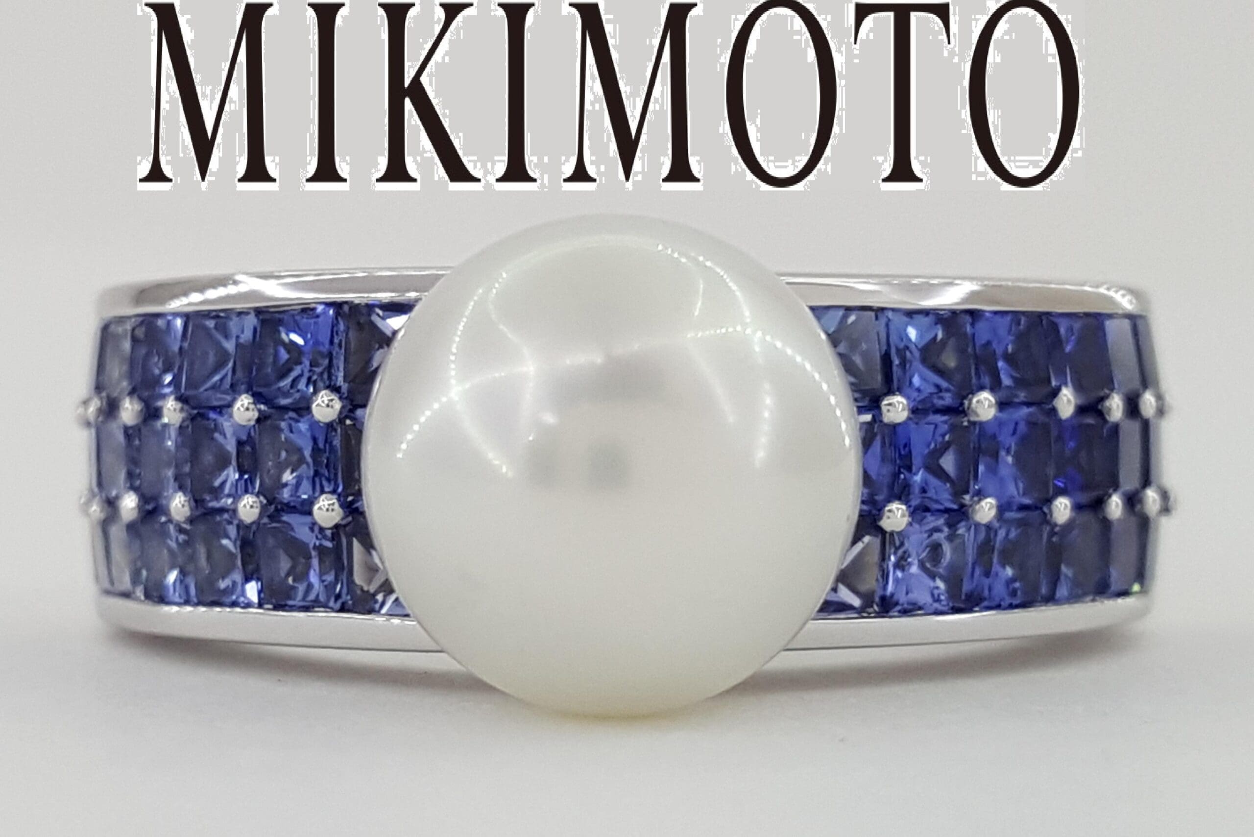 You are Purchasing a Mikimoto 9 mm South Sea Pearl & 1.72 ct Square Blue Sapphire Statement Ring 18k Yellow Gold