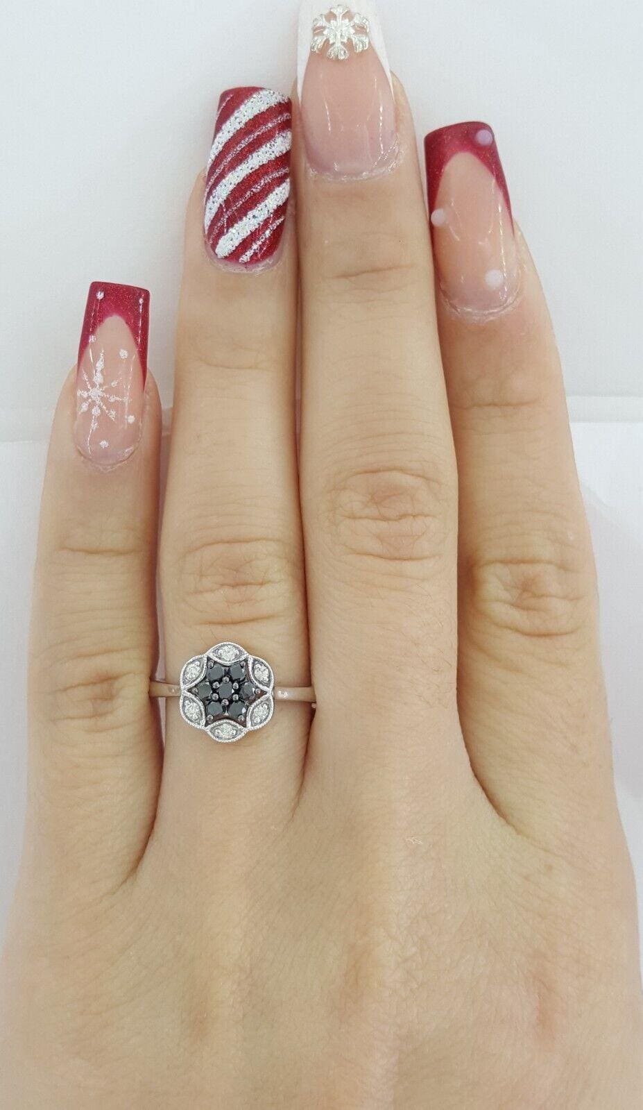 You are purchasing a ~0.32 ct total weight 14K White Gold Round Brilliant Cut White & Black Diamond Halo Engagement.