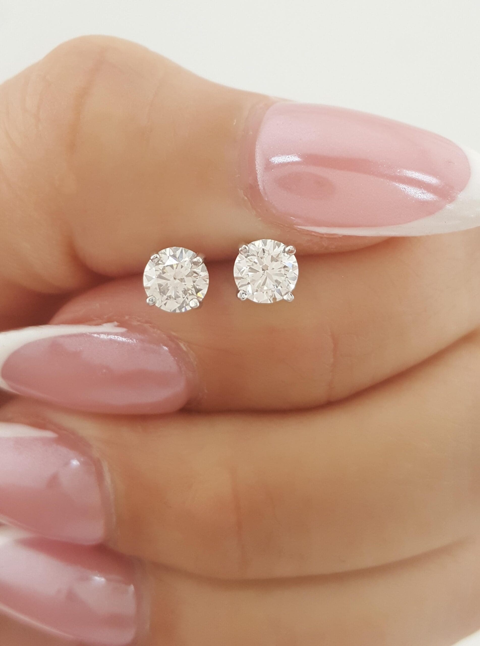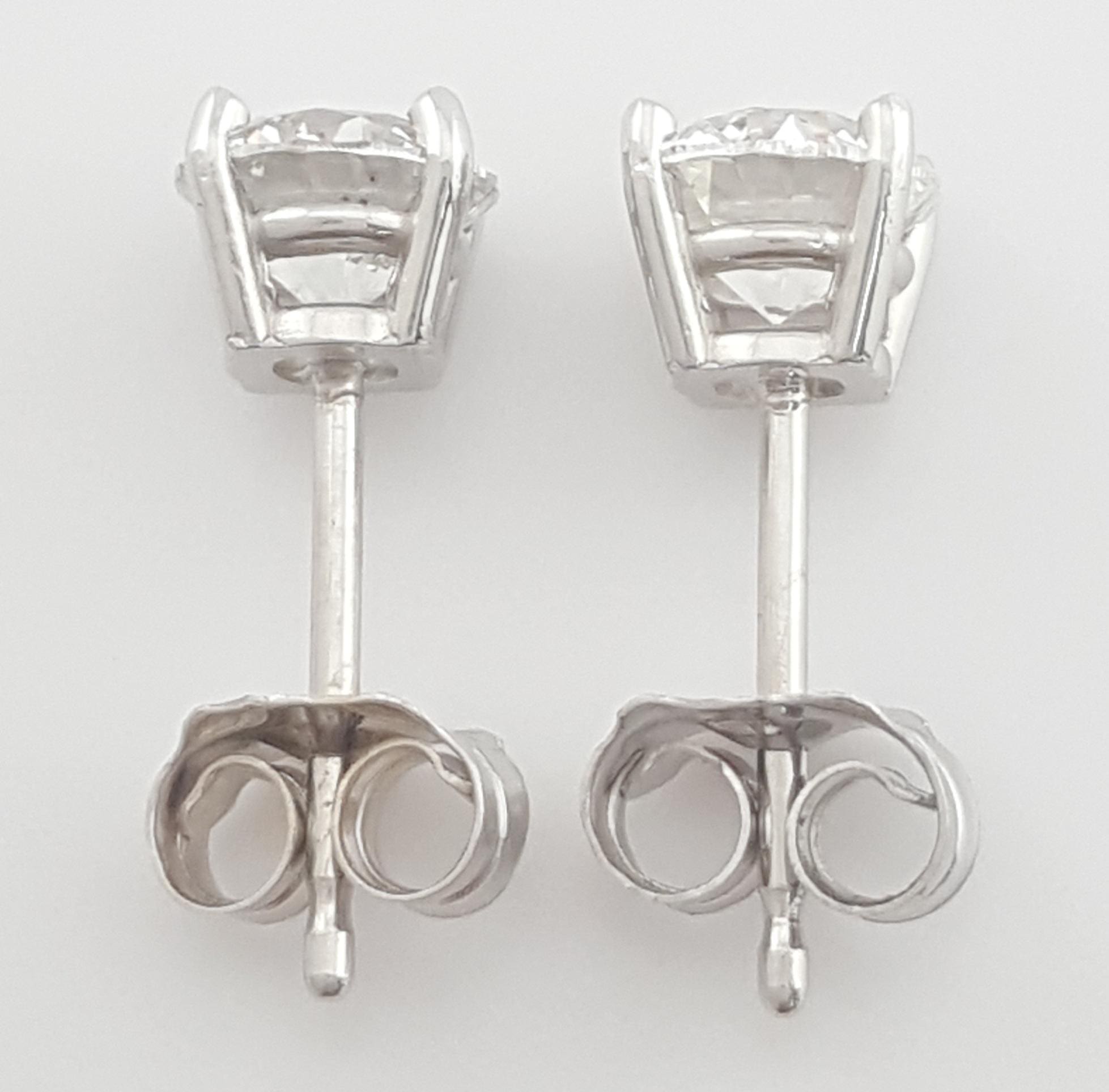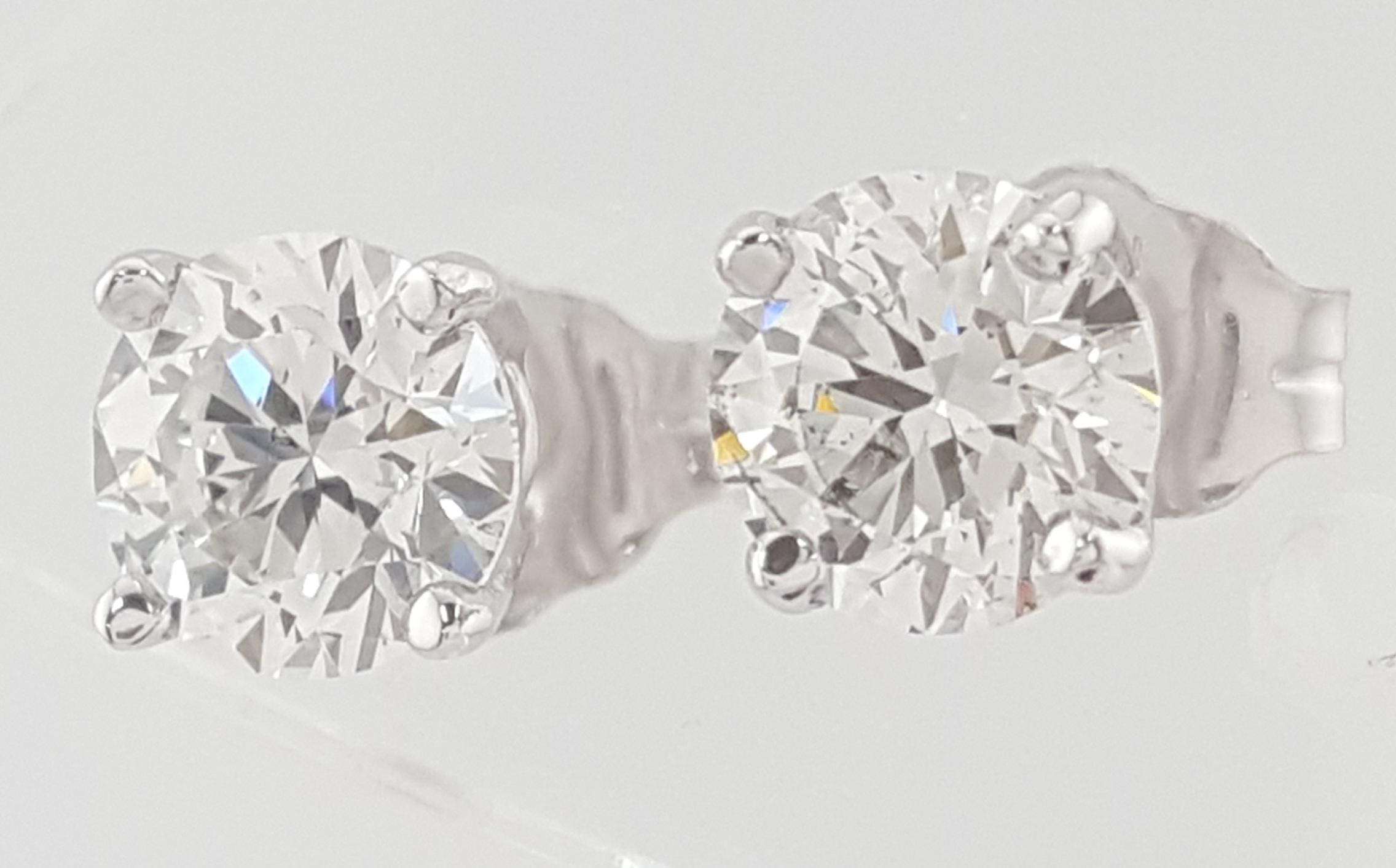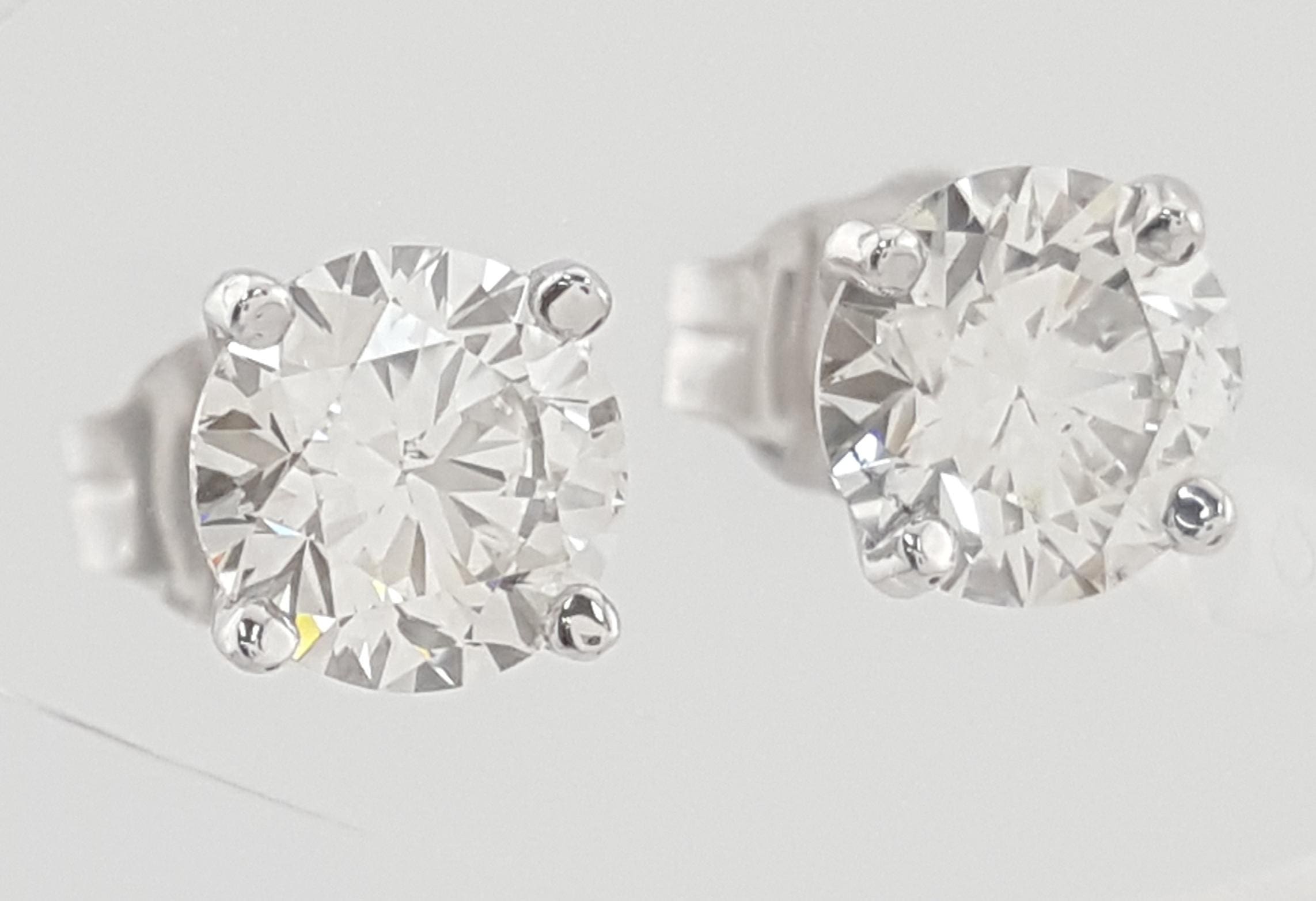 You are Purchasing a Pair of 0.92 ct Natural Round Brilliant Cut Diamond Stud Earrings in 14k White Gold