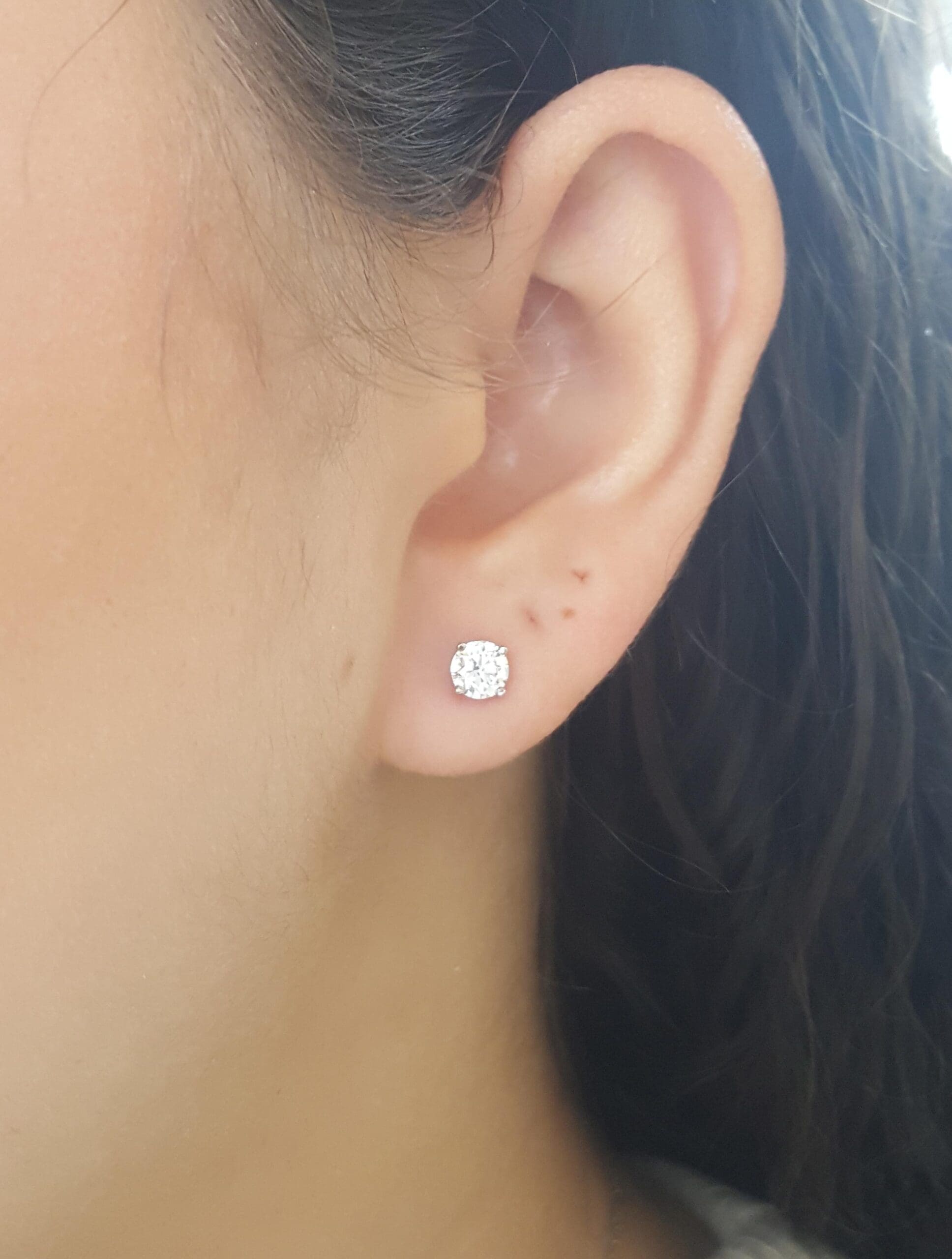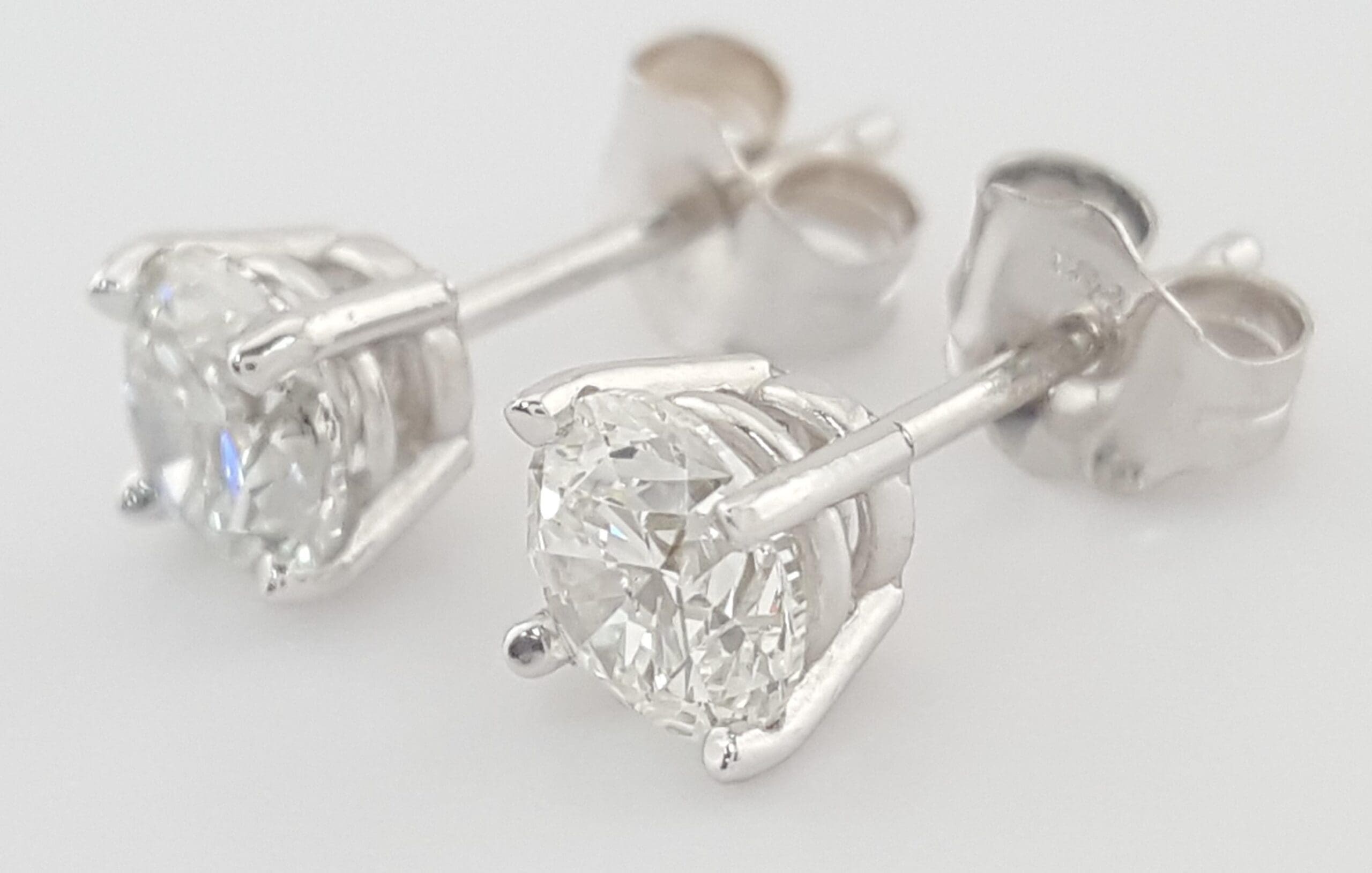 The earrings weigh 0.8 grams, there are 2 Natural Round Brilliant Cut diamonds weighing 0.92 ct total weight