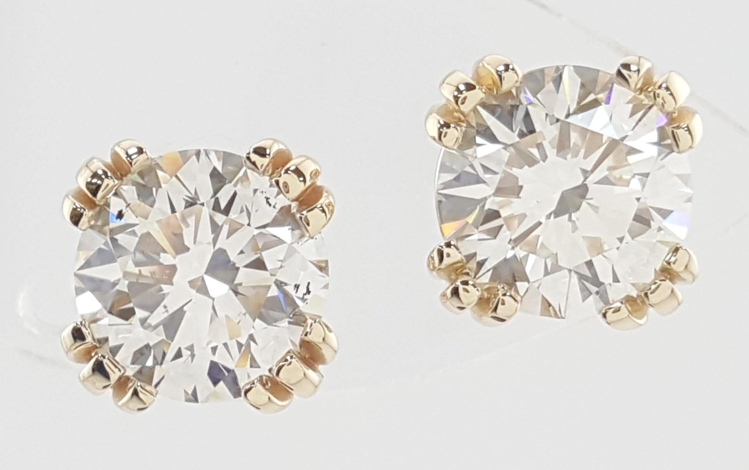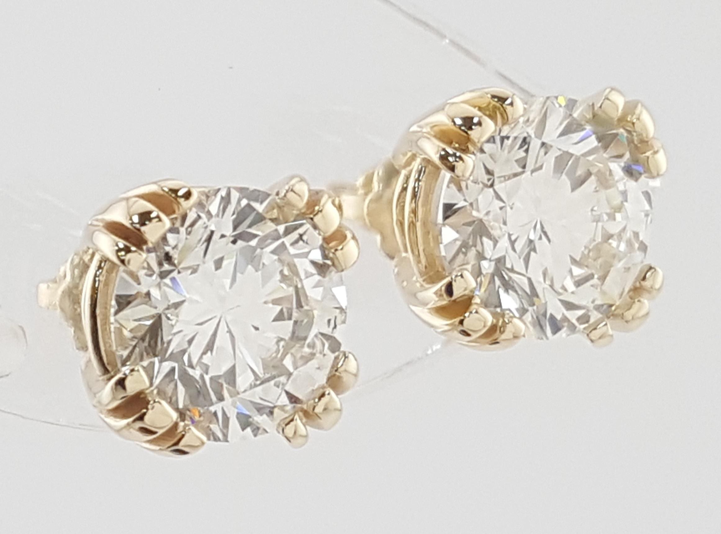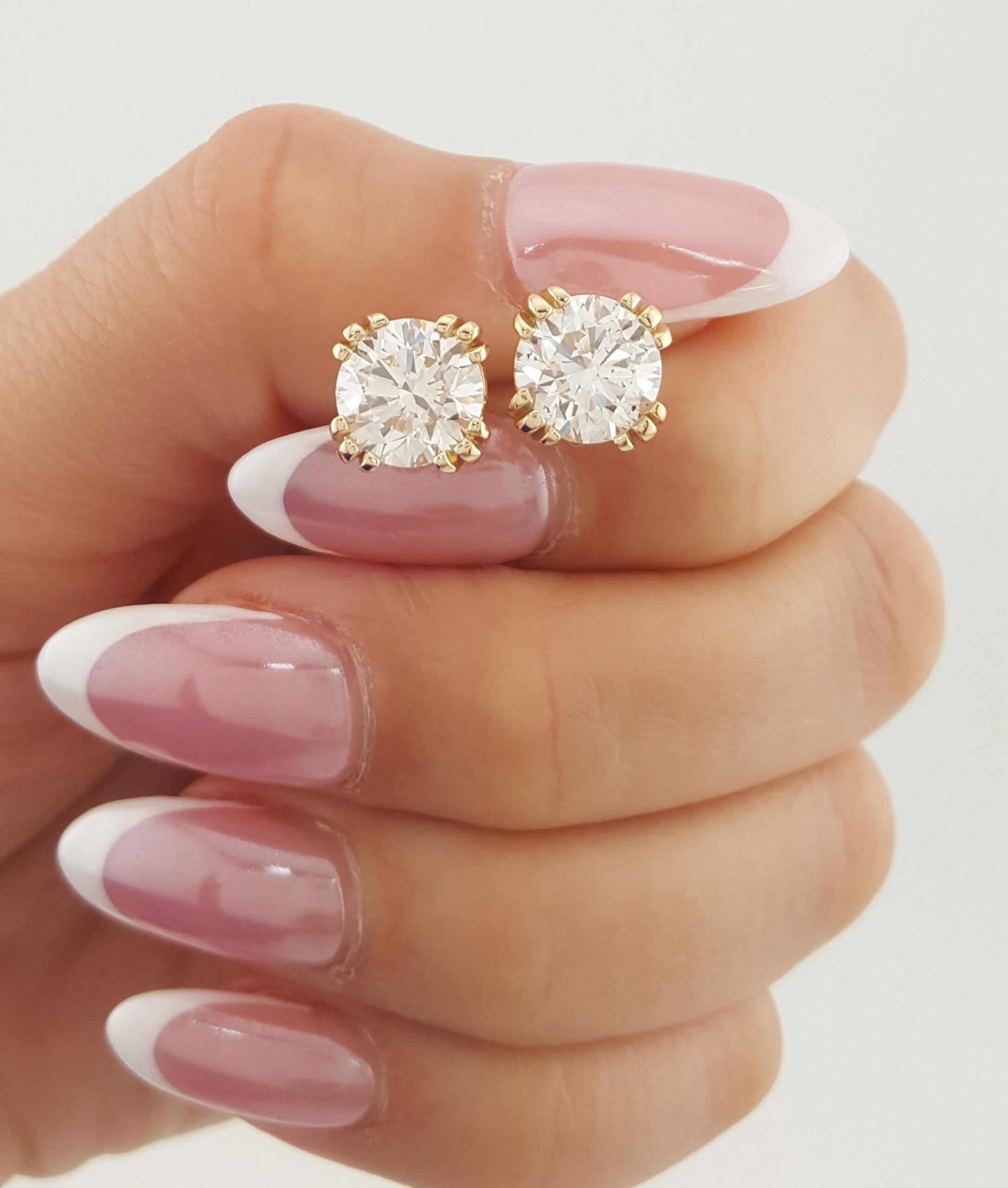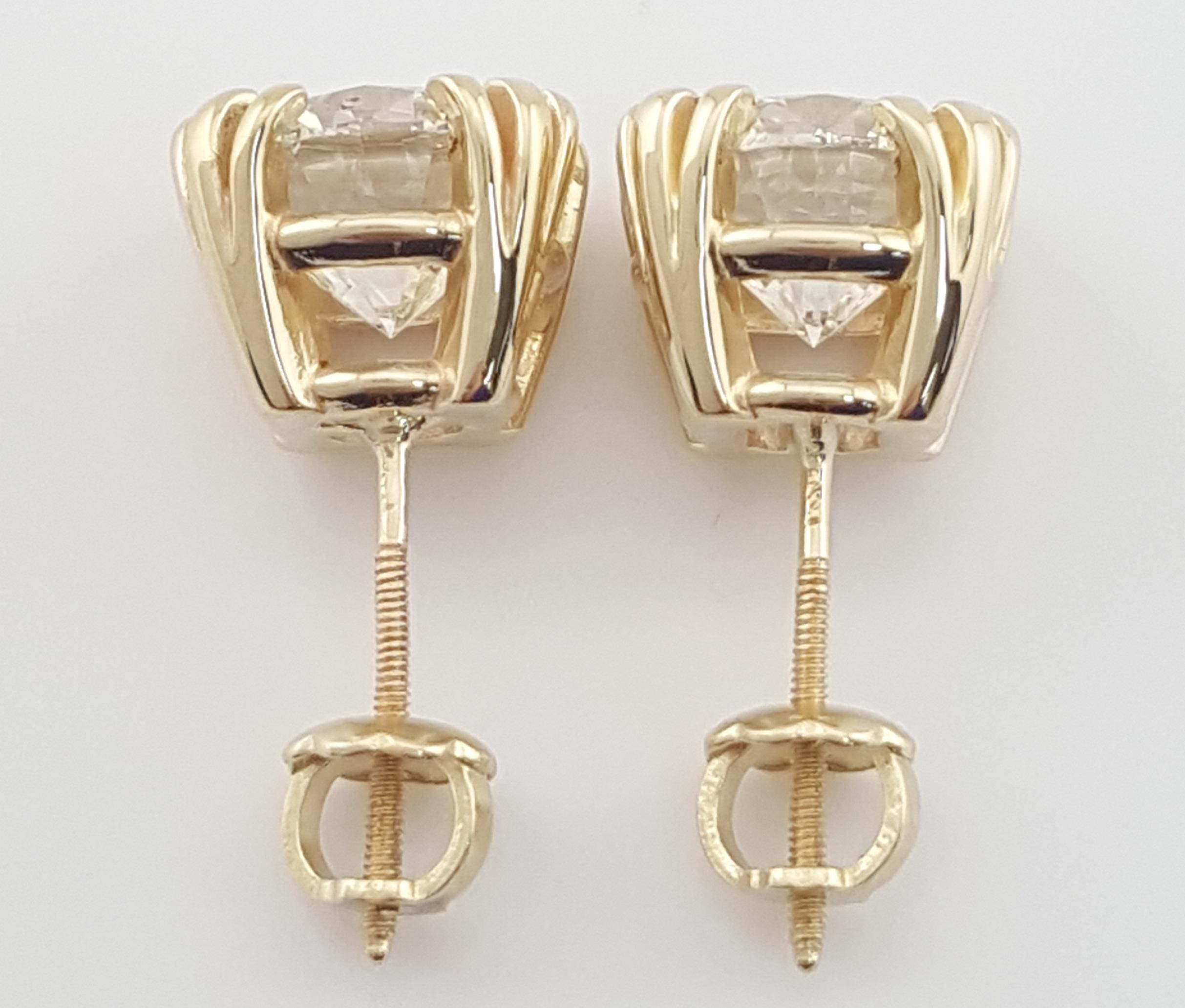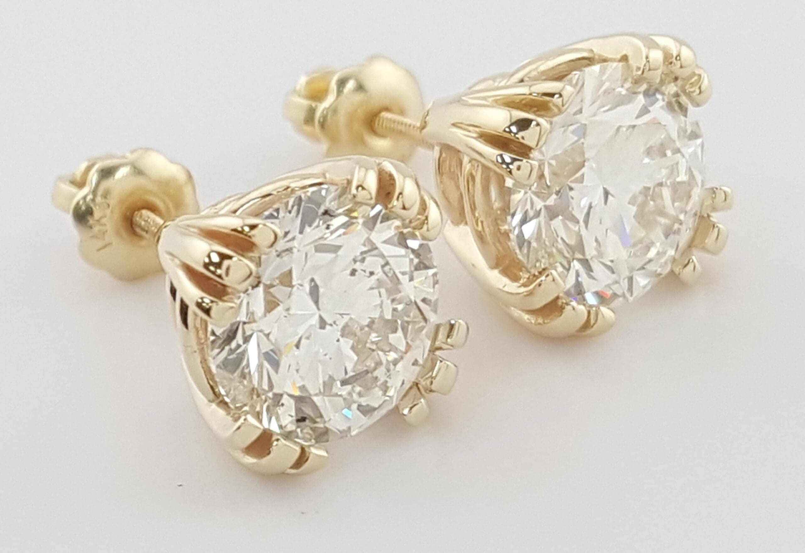 You are Purchasing a Pair of 4.01 ct Total Weight Round Brilliant Cut Diamond Stud Earrings in 14k Yellow Gold.