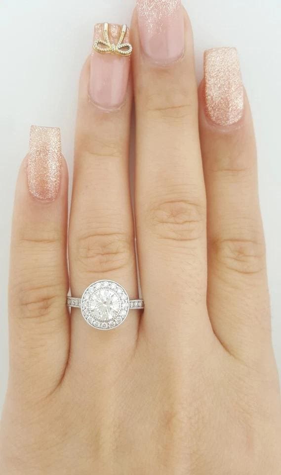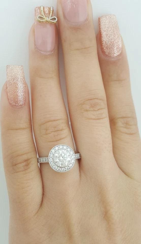 You are purchasing a 1.48 ct Round Brilliant Cut Diamond Halo Platinum Engagement Ring.