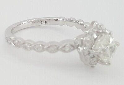 The ring weighs 3.9 grams, size 6.5, the center stone is a Natural Cushion Brilliant Cut diamond weighing 1.01 ct, I in color, SI2-SI3 in clarity.