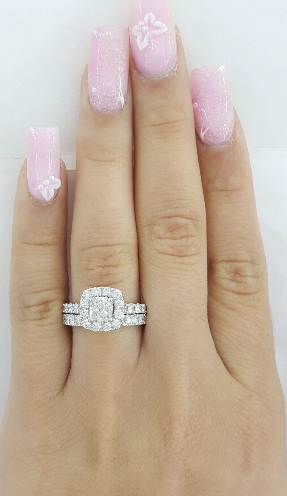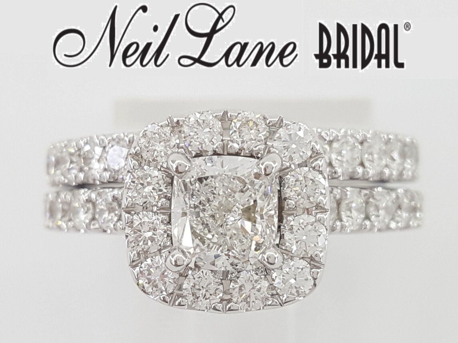 Neil Lane Cushion Diamond Halo Engagement Ring Set 14k W Gold 1.88 ct Rtl 7.4K