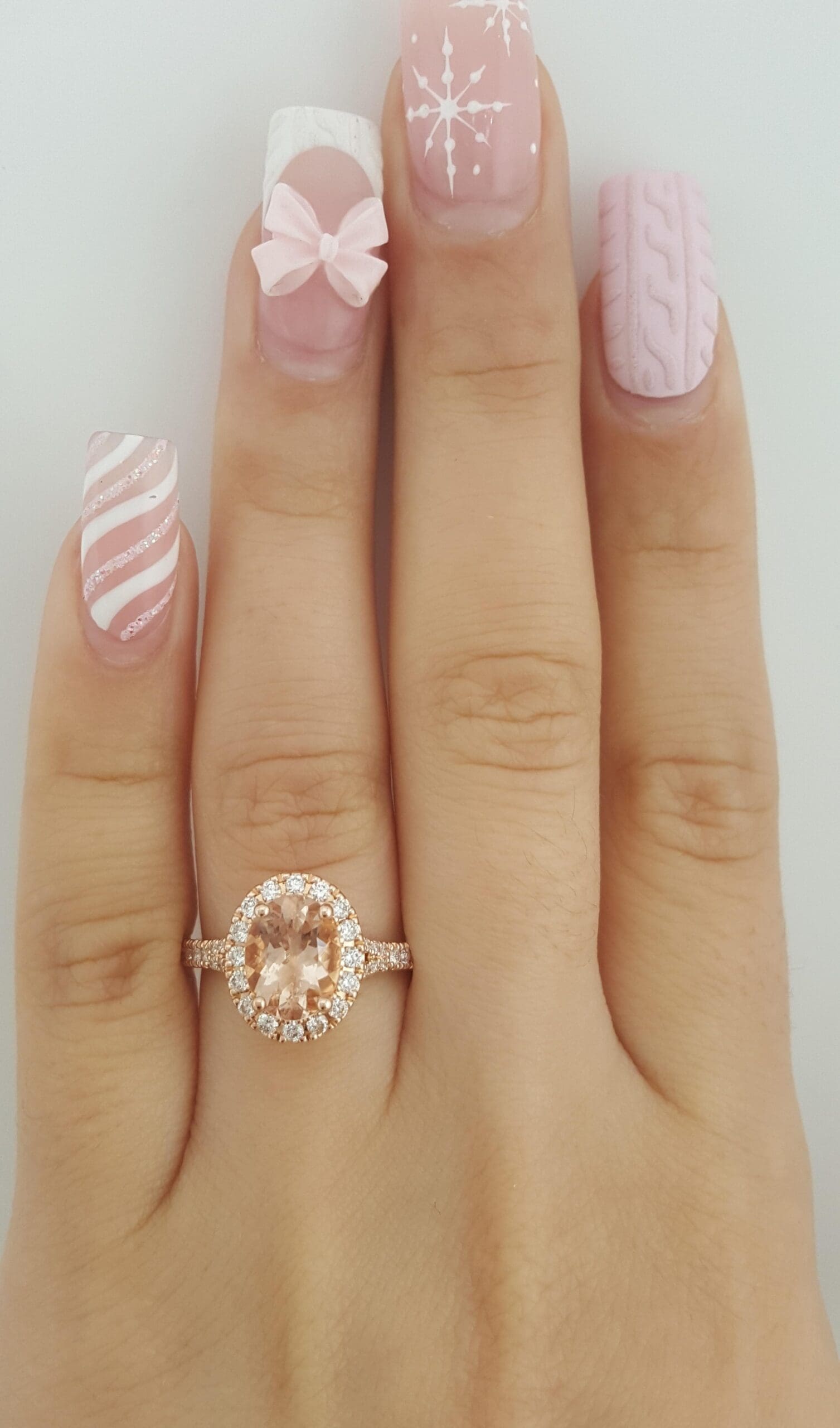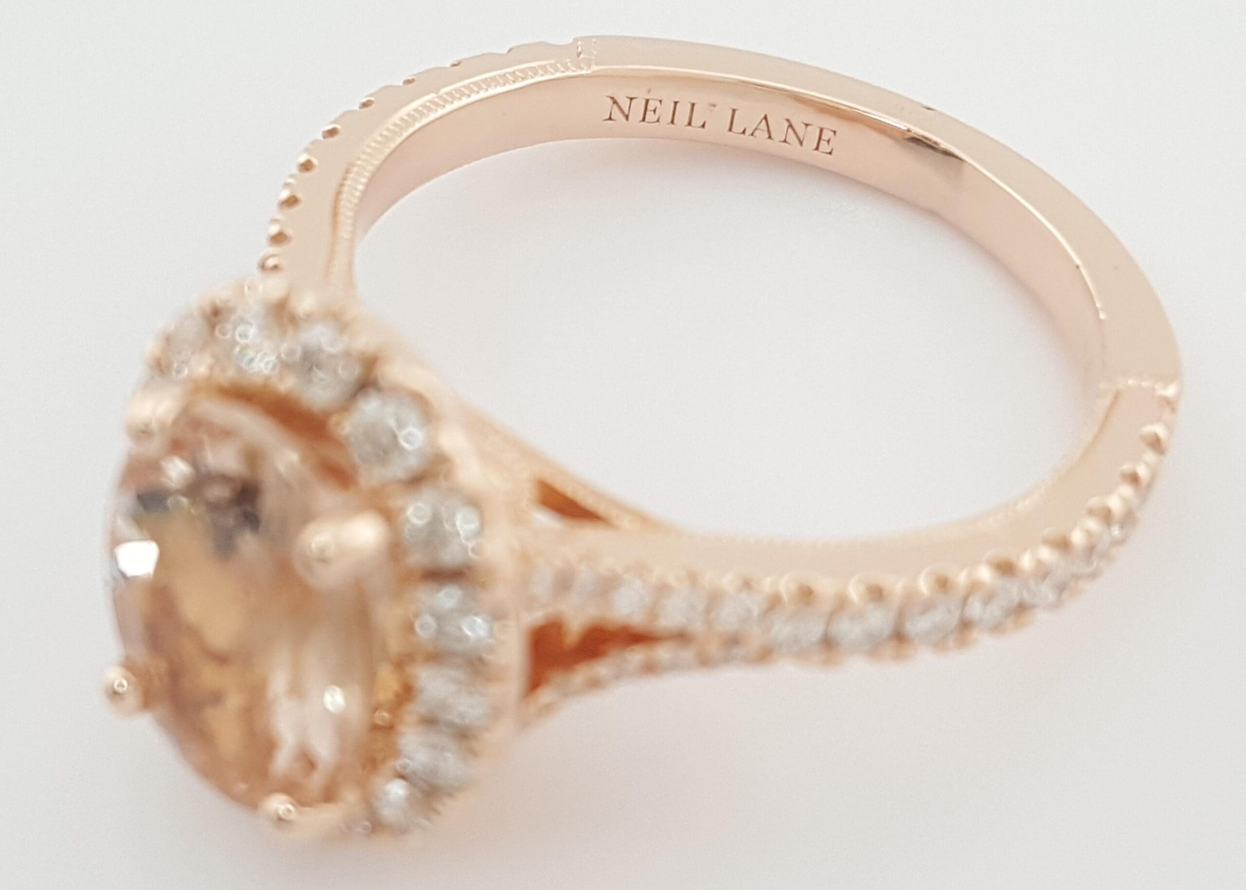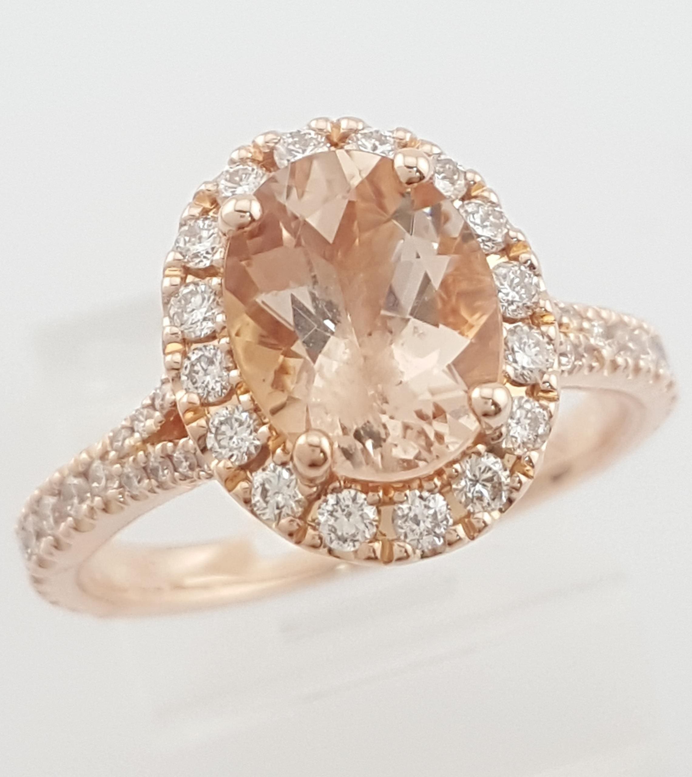 You are Purchasing a Neil Lane 0.5 ct tw Oval Cut Peach Morganite & Round Diamonds Engagement Ring in 14K Rose Gold.