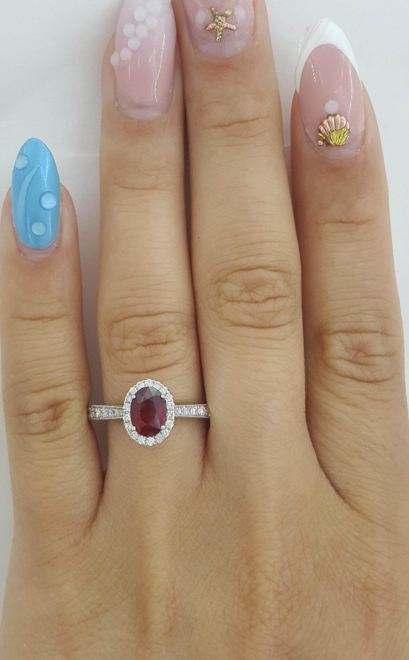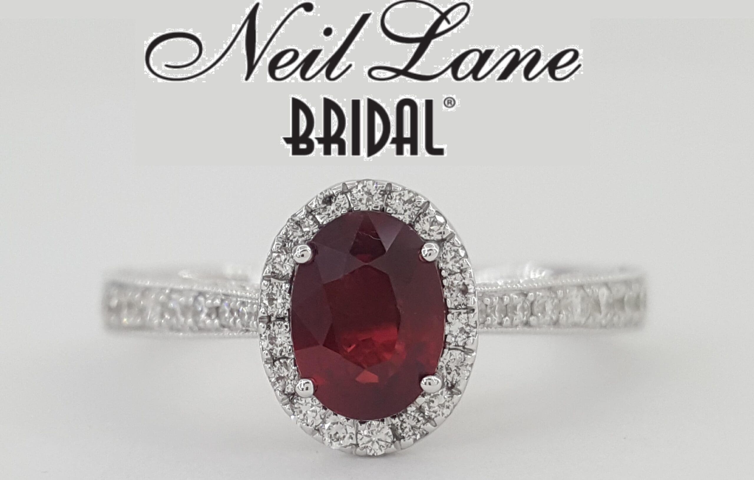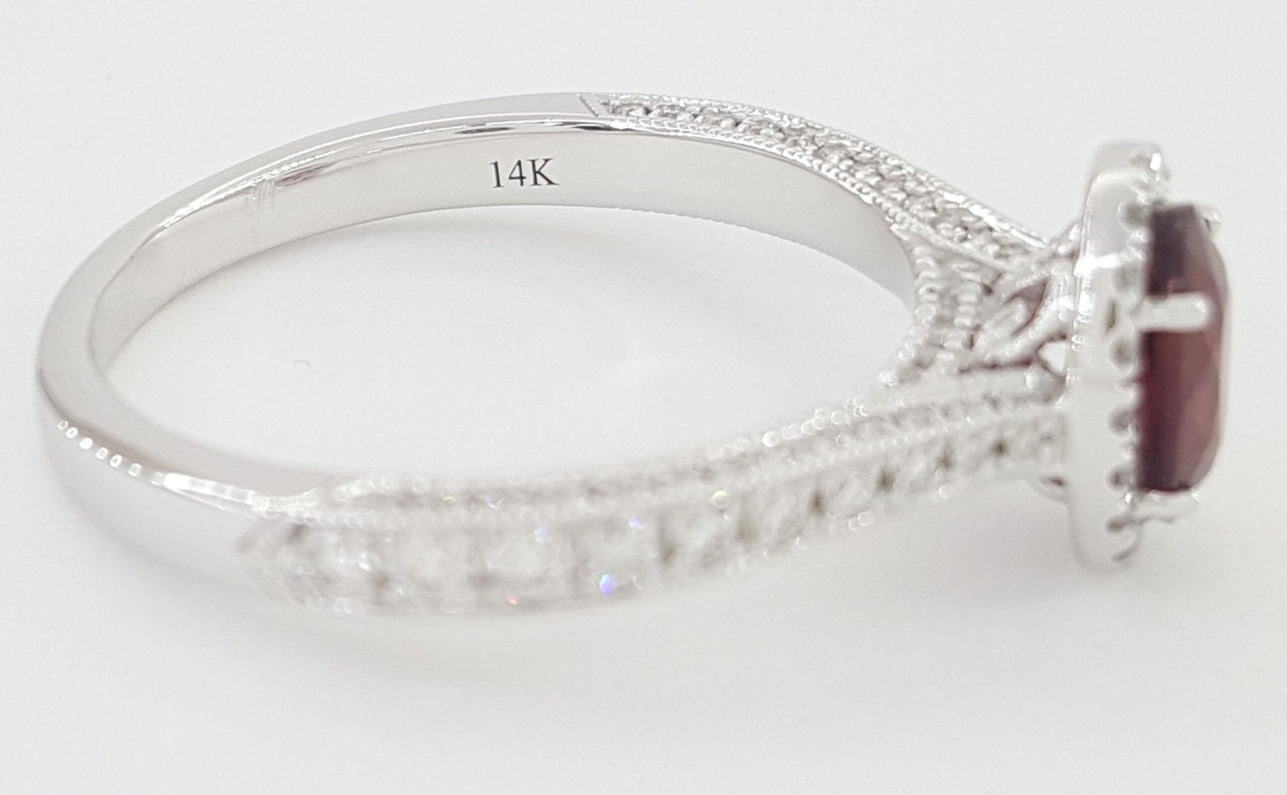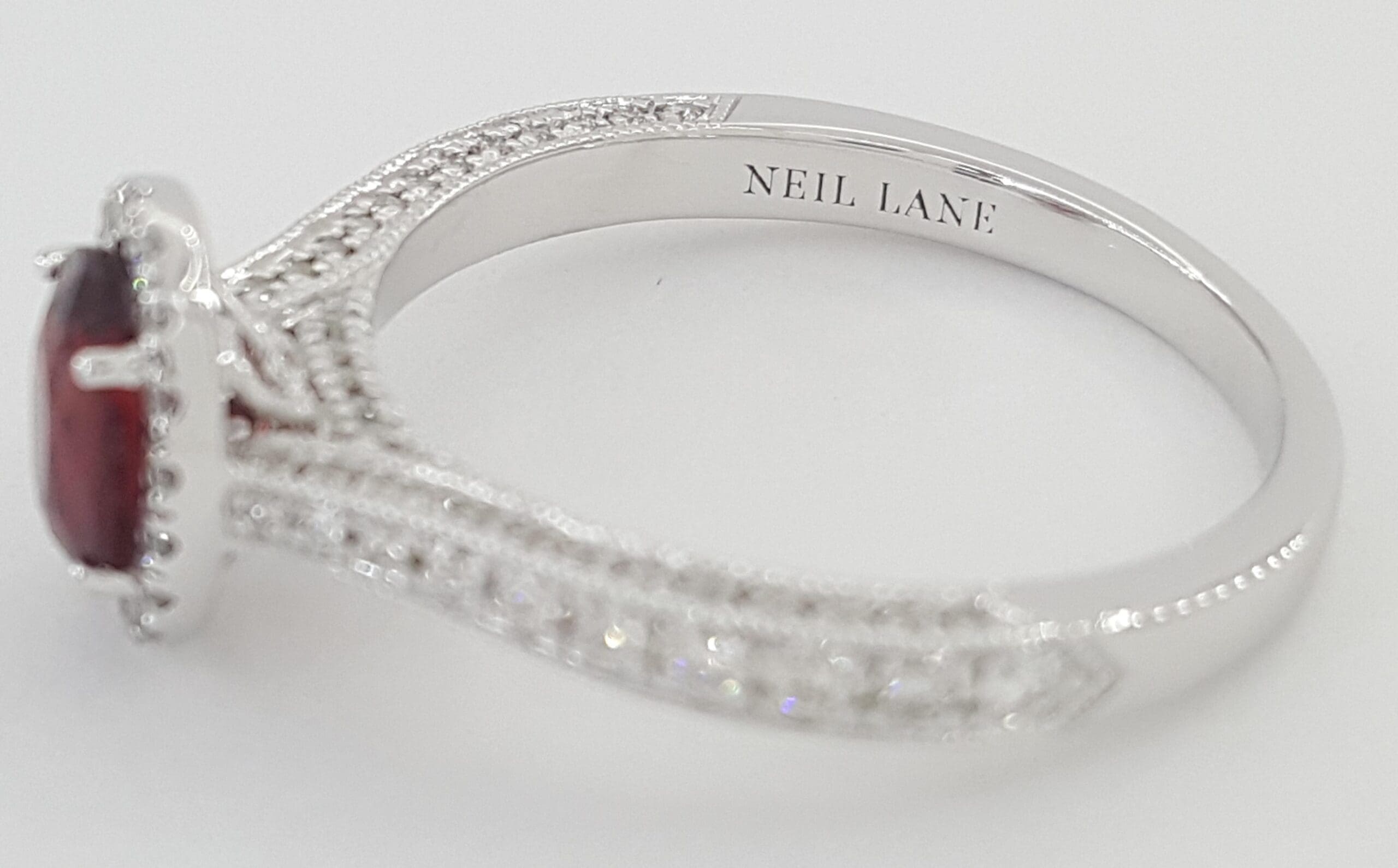 You are buying a Neil Lane 1 ct Oval Cut Ruby & 0.5 ct Round Brilliant Cut Diamond Halo Engagement Ring in 14k White Gold .