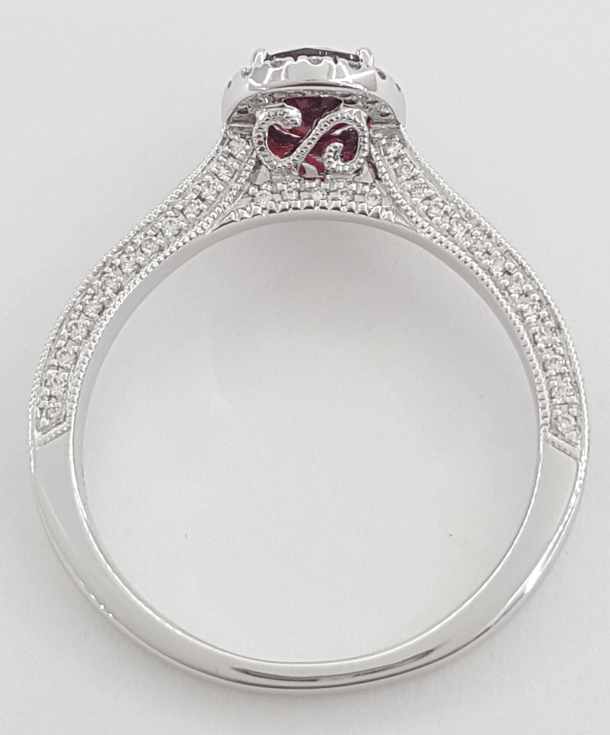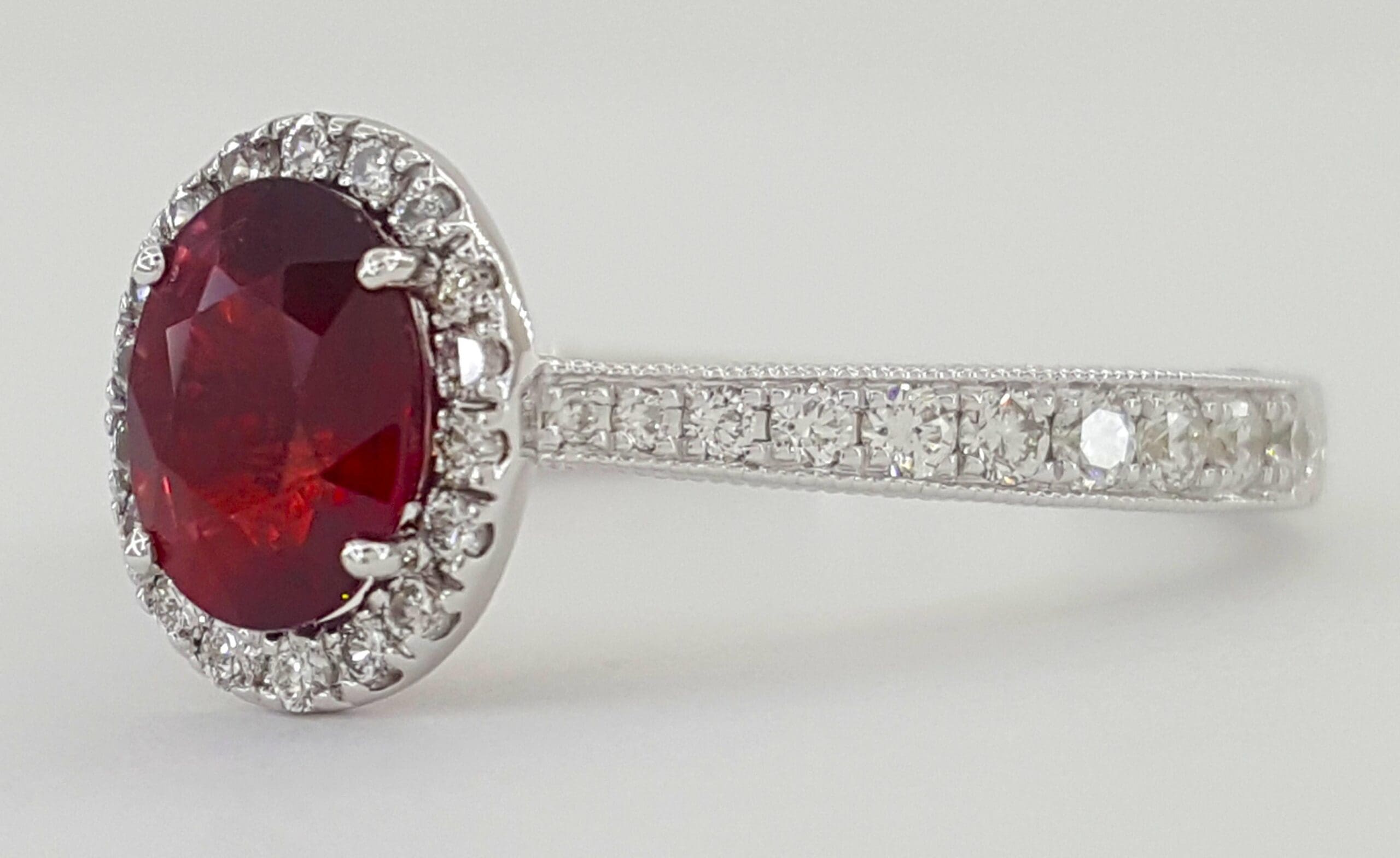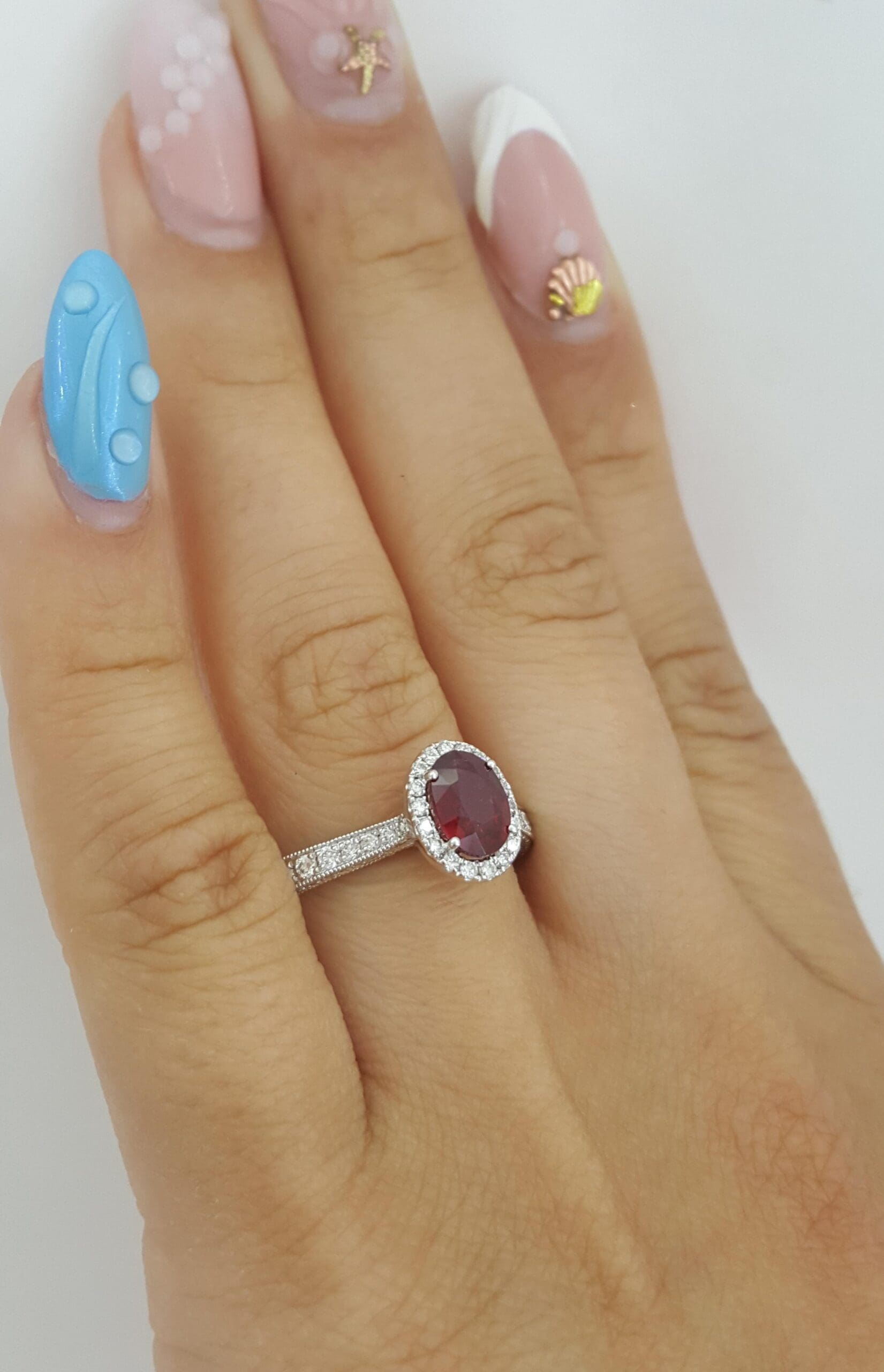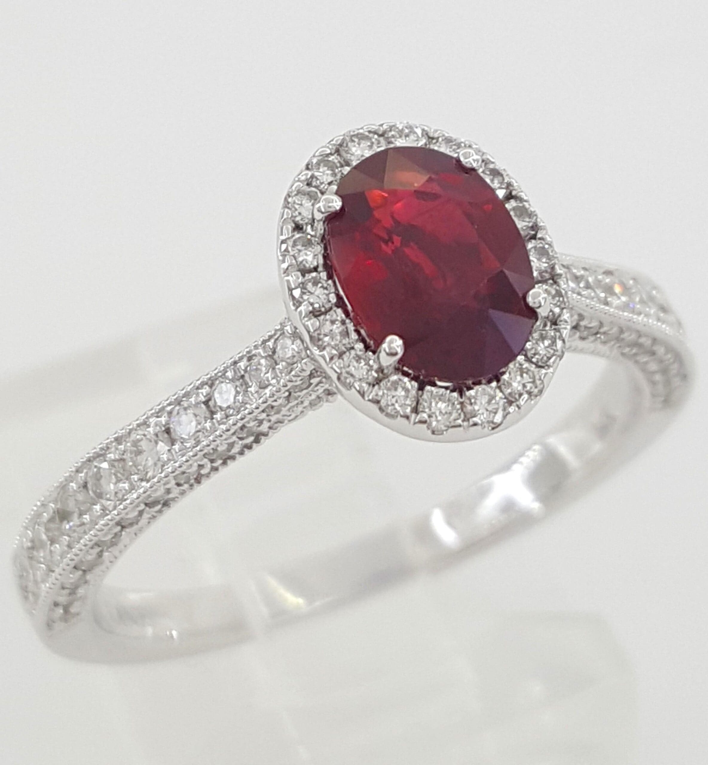 You are buying a Neil Lane 1 ct Oval Cut Ruby & 0.5 ct Round Brilliant Cut Diamond Halo Engagement Ring in 14k White Gold .