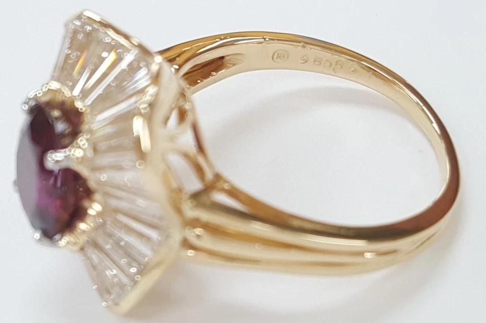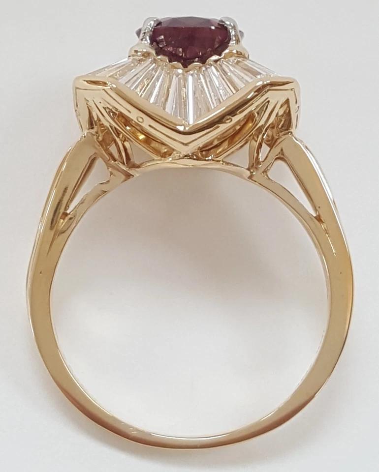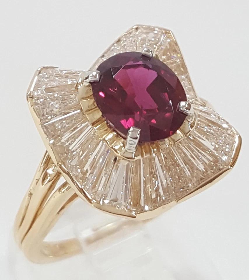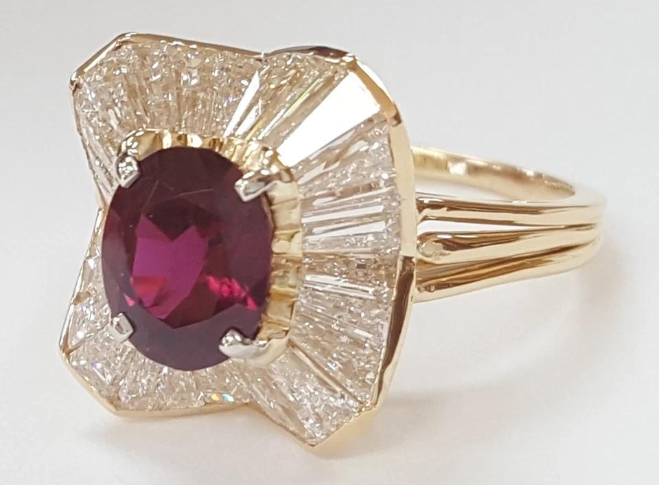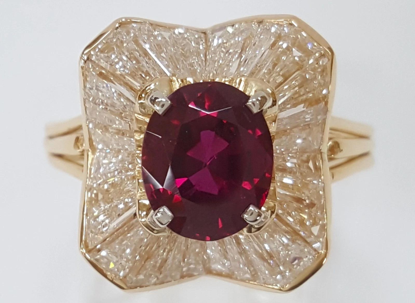 You are buying a Oscar Heyman 4.98 ct Total Weight No Heat Oval Cut Ruby & Tapered Baguette Cut Diamonds Halo Ballerina Statement Ring In 18K Yellow Gold & Platinum.