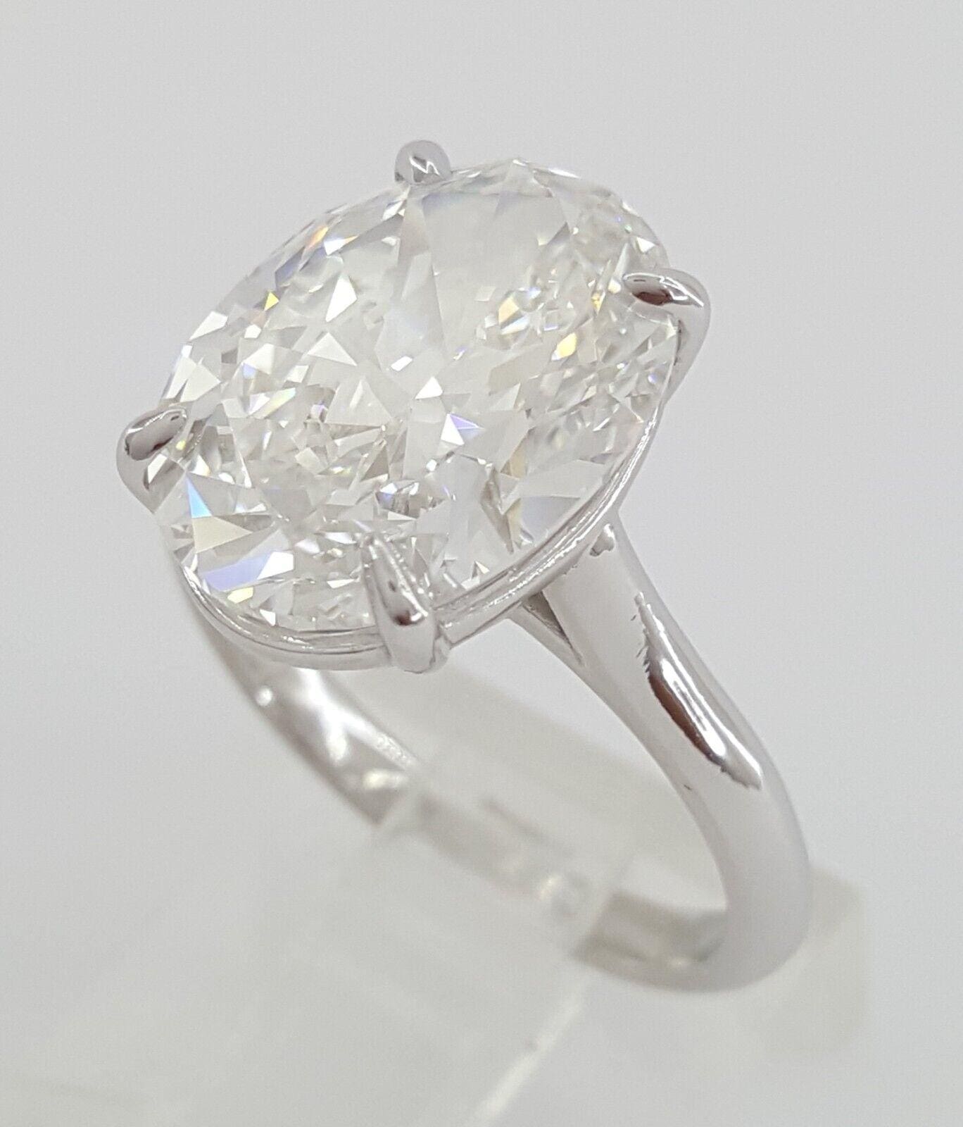 You are Buying an Natural 5.26 ct Oval Brilliant Cut Diamond Solitaire Platinum Engagement Ring Type IIa Ideal Cut. The ring weighs 6.3 grams, size 6, the center stone is a Natural Oval Brilliant Cut diamond weighing 5.26 ct, E in Color, Internally Flawless in Clarity, Excellent Cut, Very Good Polish, Excellent Symmetry & None Fluorescence, 59% Depth, 64% Table, measuring 13.43 x 9.92 x 5.89 mm. The center diamond is Graded & Inscribed by GIA report # "GIA 522191****". The retail price is $570,000. We can design your dream ring with this diamond! The ring comes with GIA Diamond Report. Please follow us on Instagram for more unique items & specials: Exquisite_Jewelers_Inc. We have a video of this ring on our Instagram page. Exquisite_Jewelers_Inc. Due to the high value of this ring, we prefer bank wire or bank check as the form of payment. Please contact us if you have any questions or concerns. This ring can be seen in person at Exquisite Jewelers, in Palatine, IL 847-202-7889.