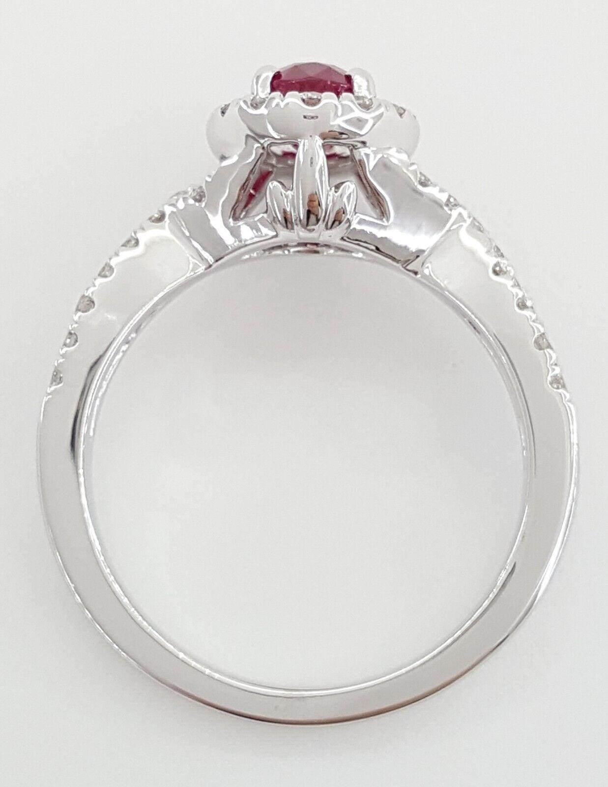 You are buying a 1.5 ct Total Weight Oval Cut Ruby & Round Brilliant Cut Diamond Halo Engagement Ring 14k White Gold.