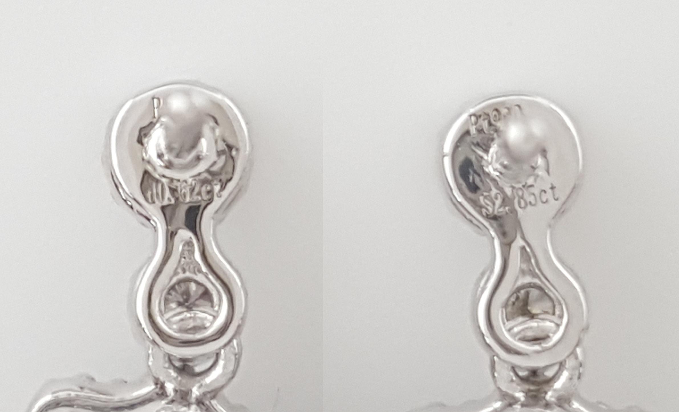 Both earrings are stamped "Pt900 S2.85ct" & "Pt900 d0.62ct" & Hallmark.