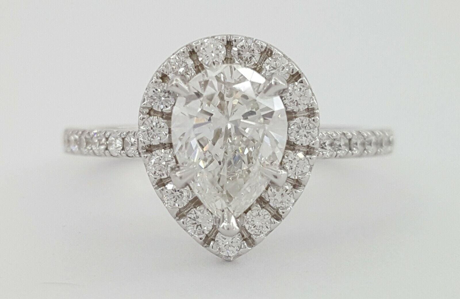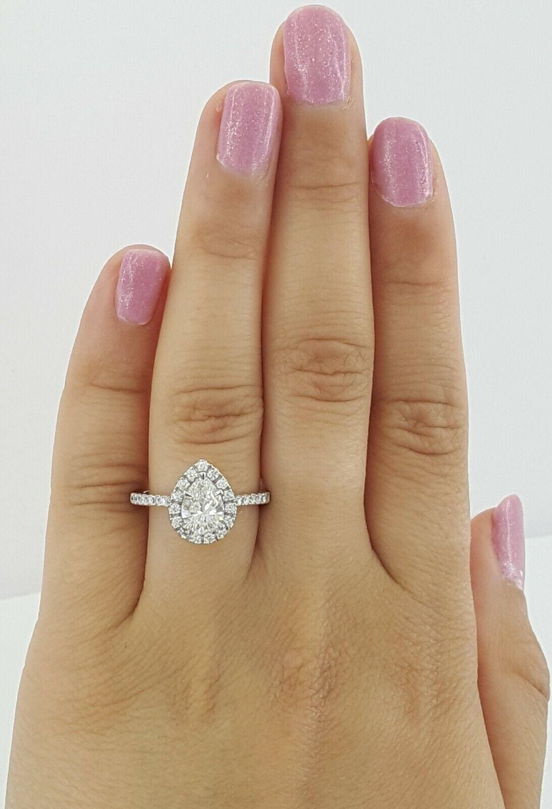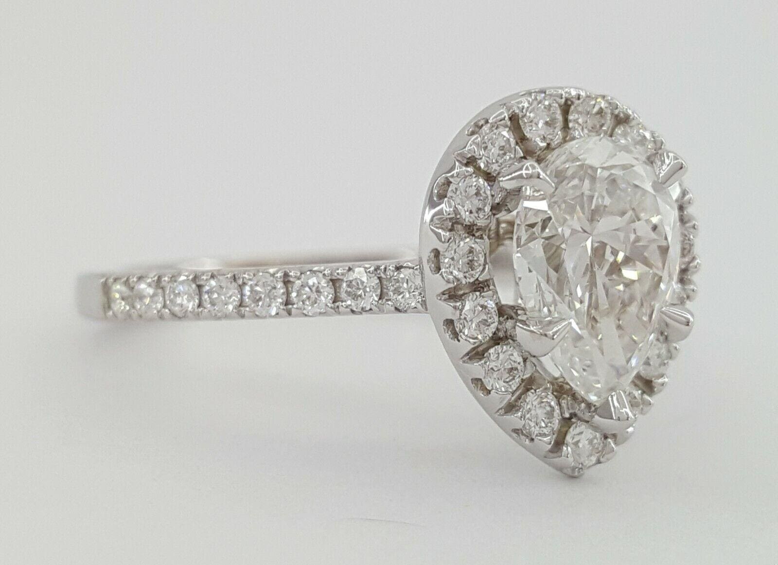 You are purchasing a 1.35 ct total weight Pear Brilliant Cut Diamond Halo Engagement Ring.