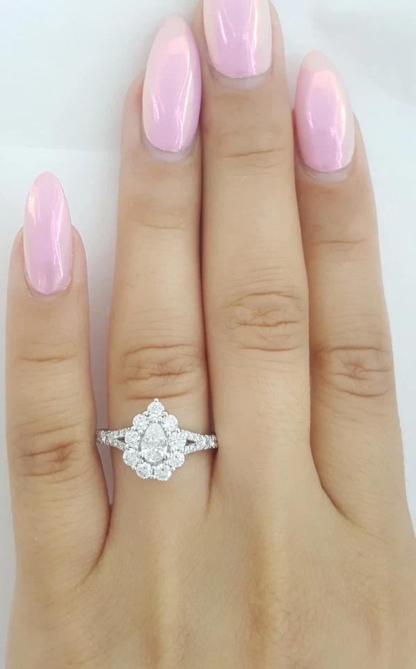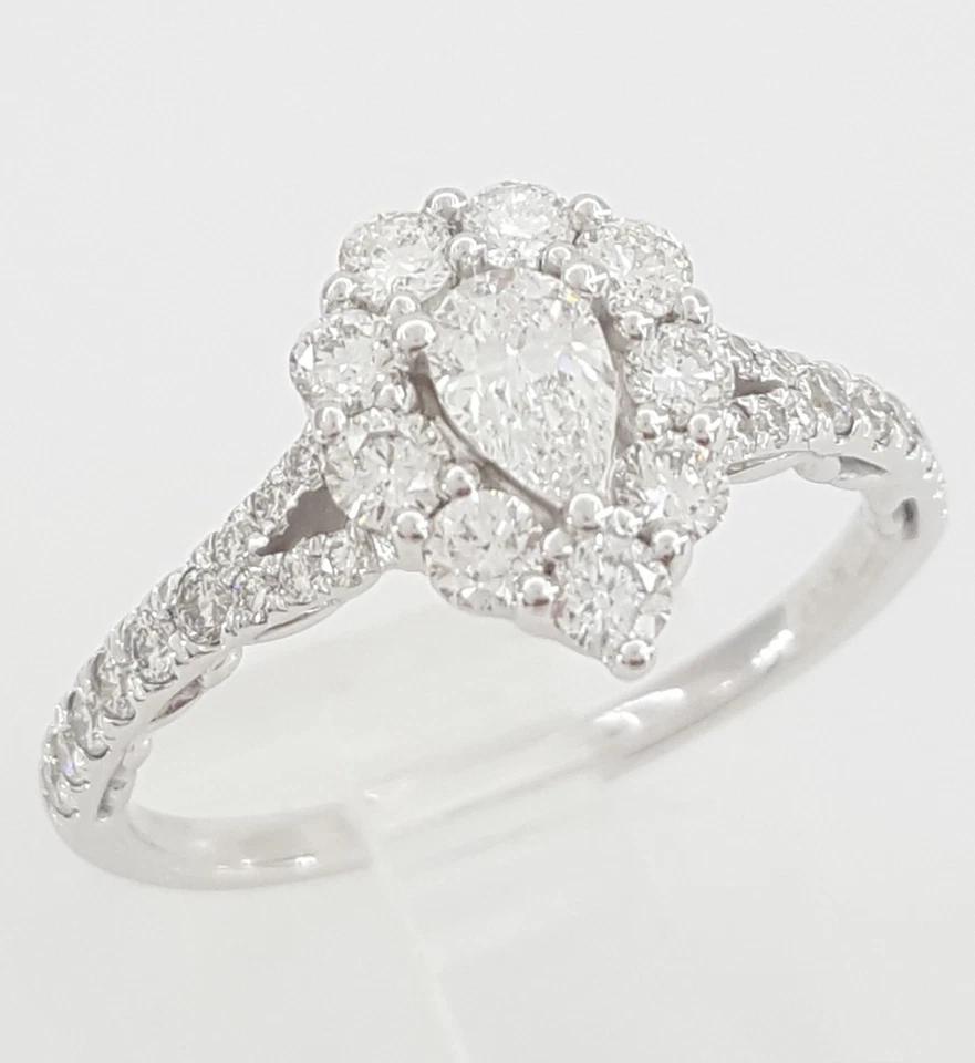 You are purchasing a 1.16 ct Pear Brilliant Cut Diamond Halo Engagement Ring in 14k White Gold.