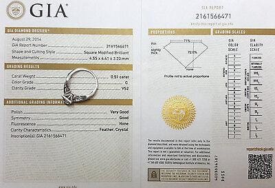 You are Purchasing a 0.77 ct Total Weight 14K Square Modified Cut Diamond Engagement Ring GIA Certified.