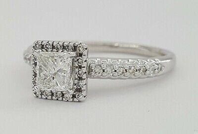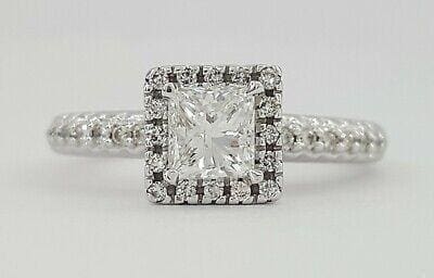 Princess Cut Diamond Halo Engagement Ring 0.95 ct 14K White Gold GIA F/SI2 Rtl5K