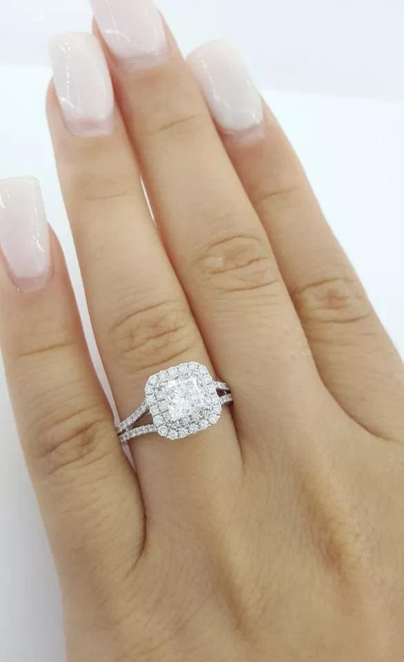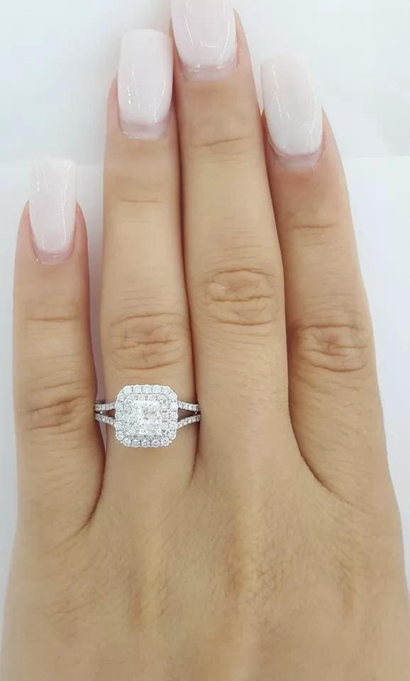 Be the first to review “Princess Diamond Double Halo Split Shank Engagement Ring 1.33 ct 14k W Gold 7k”