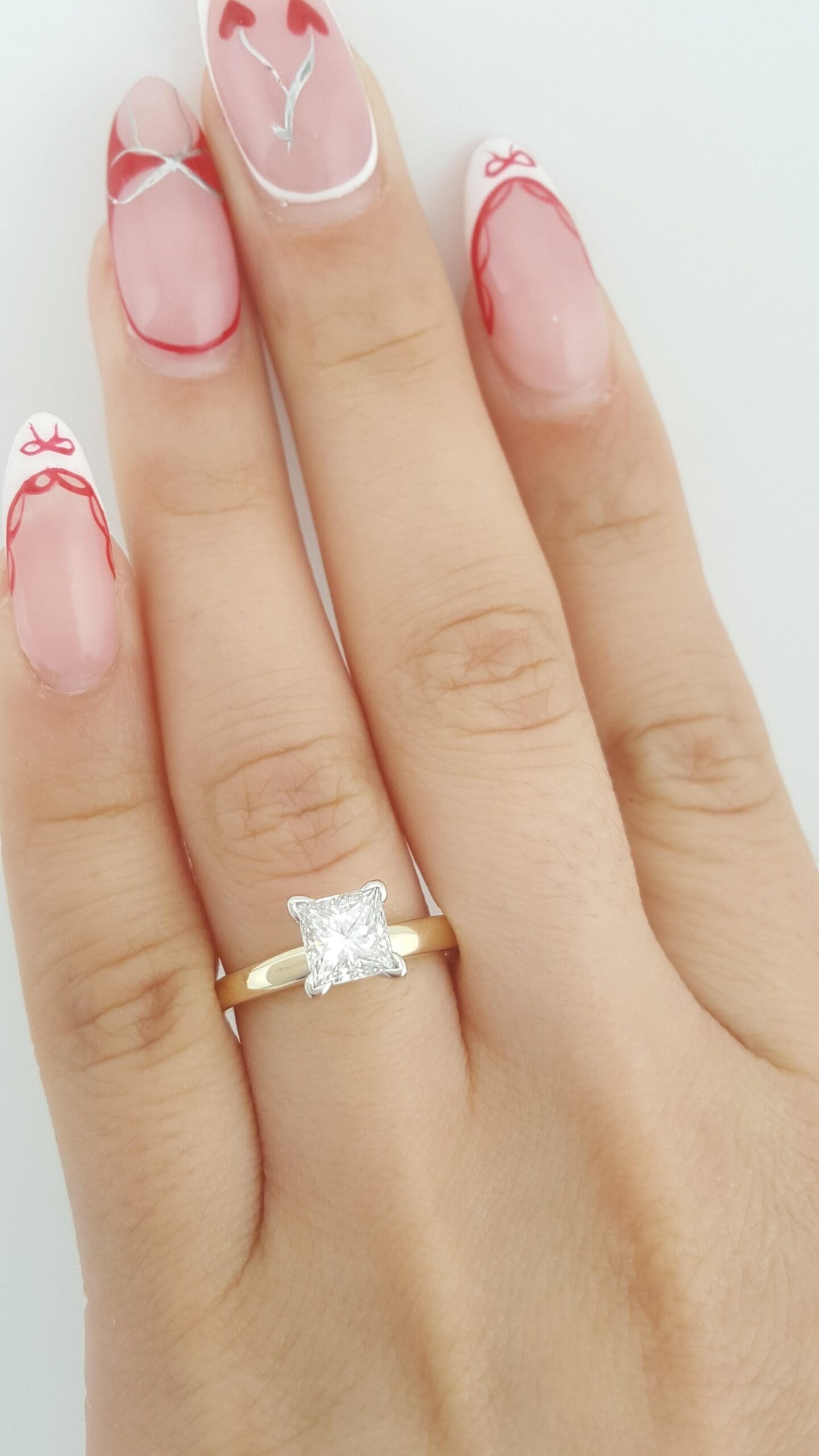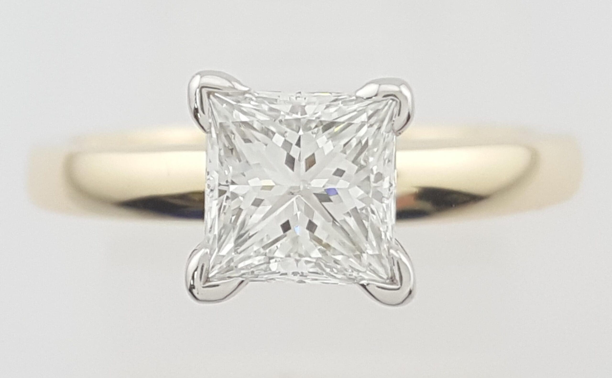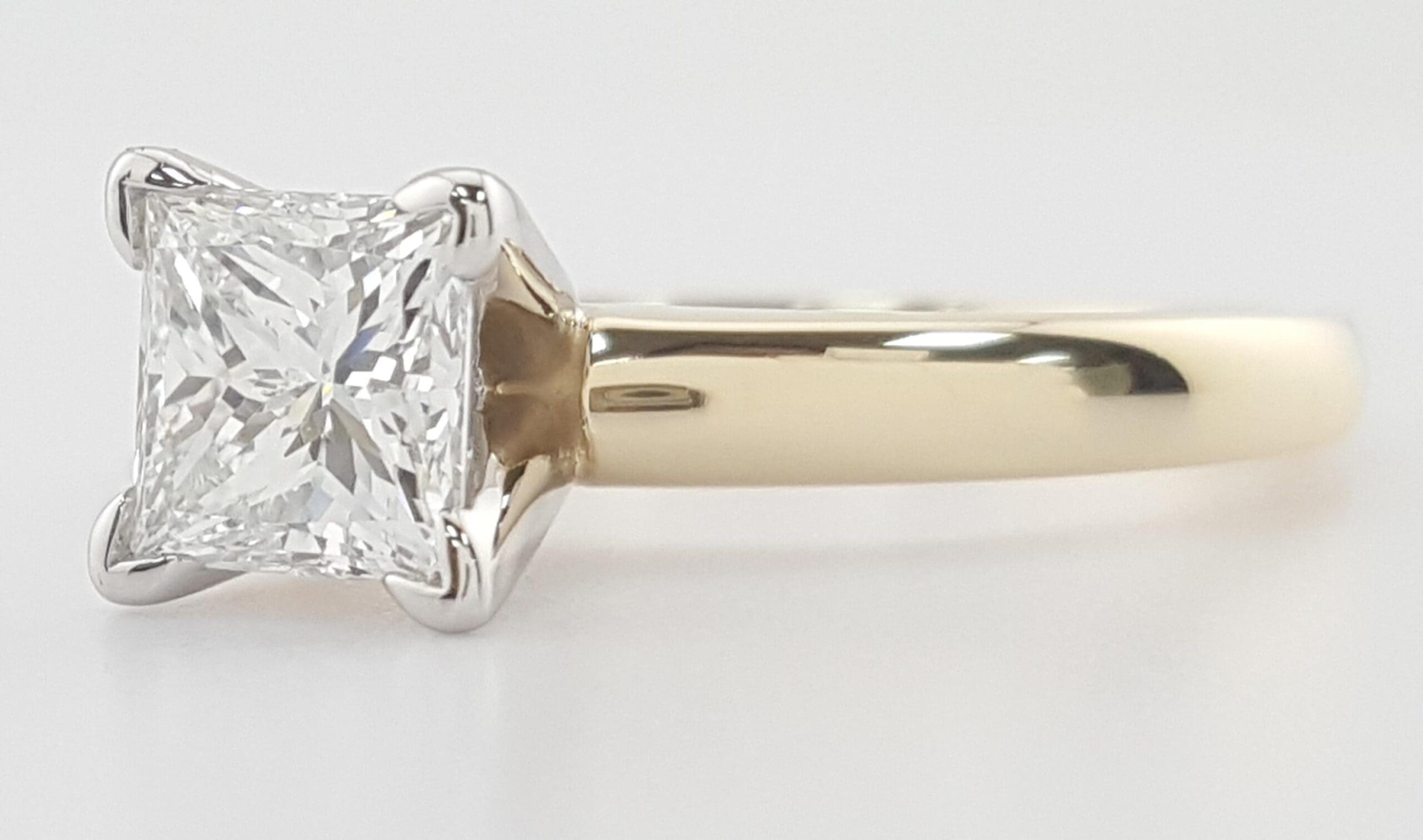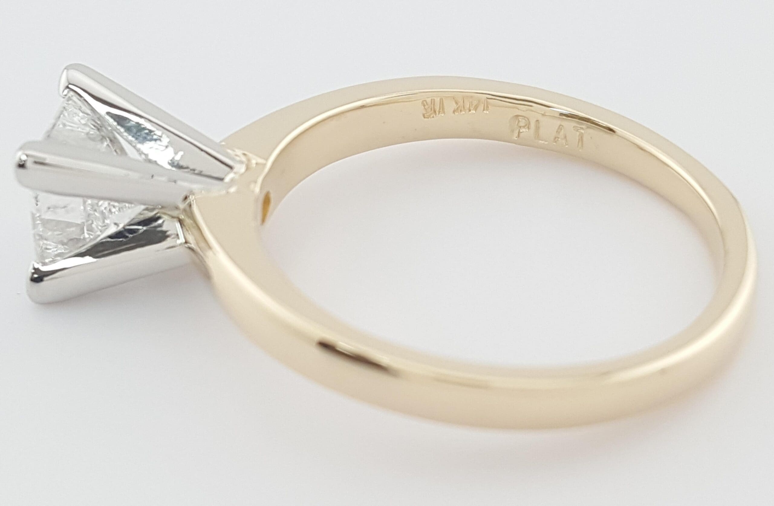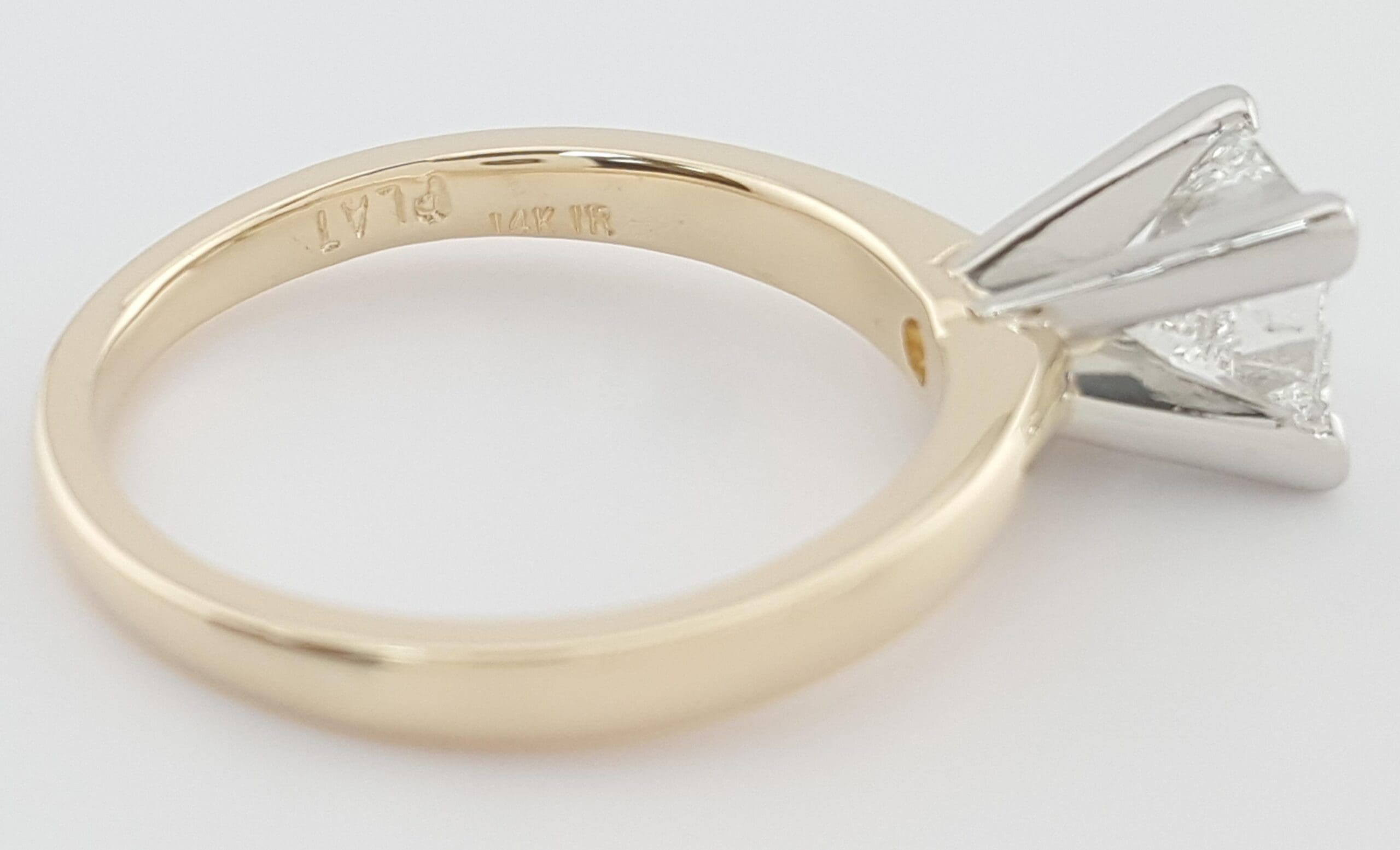 You are Purchasing a 1.05 ct Princess Brilliant Cut Diamond Solitaire 14k Yellow Gold & Platinum Engagement Ring.