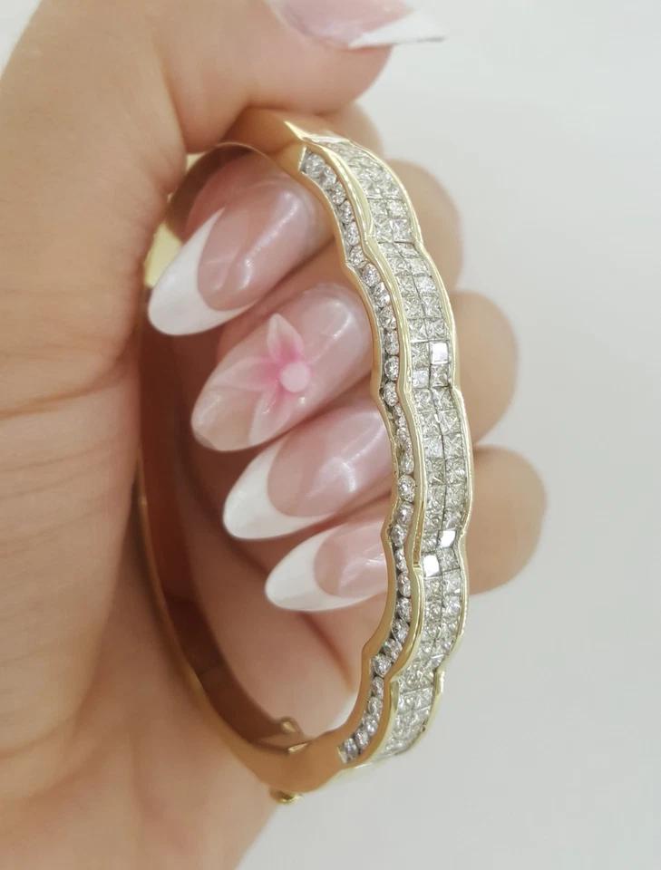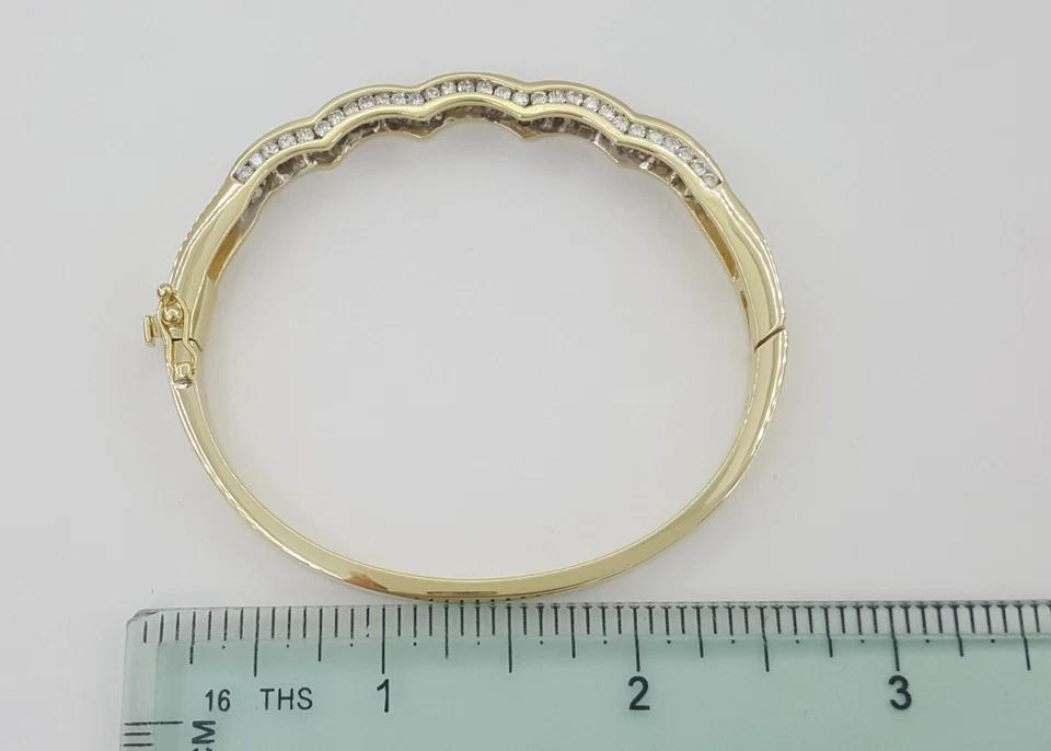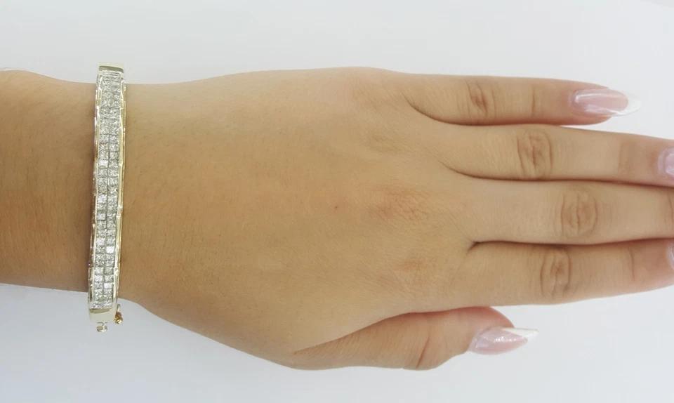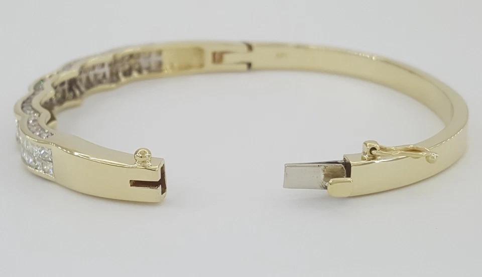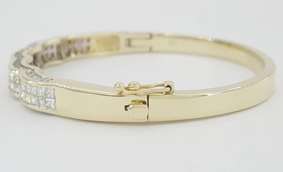 Princess Round Diamond Bangle Bracelet 4 ct 14K Yellow Gold 25.6 Grams 7″