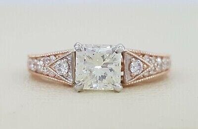 You are purchasing a 1.24 ct total weight 14K Rose Gold Radiant Brilliant Cut Diamond Vintage Style Engagement Ring.