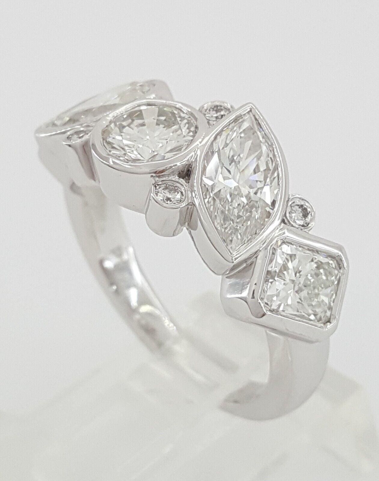 Radiant Marquise Round Pear Oval Diamond 5 Stone Bezel Ring PLAT 3.62 ct Rtl 15K