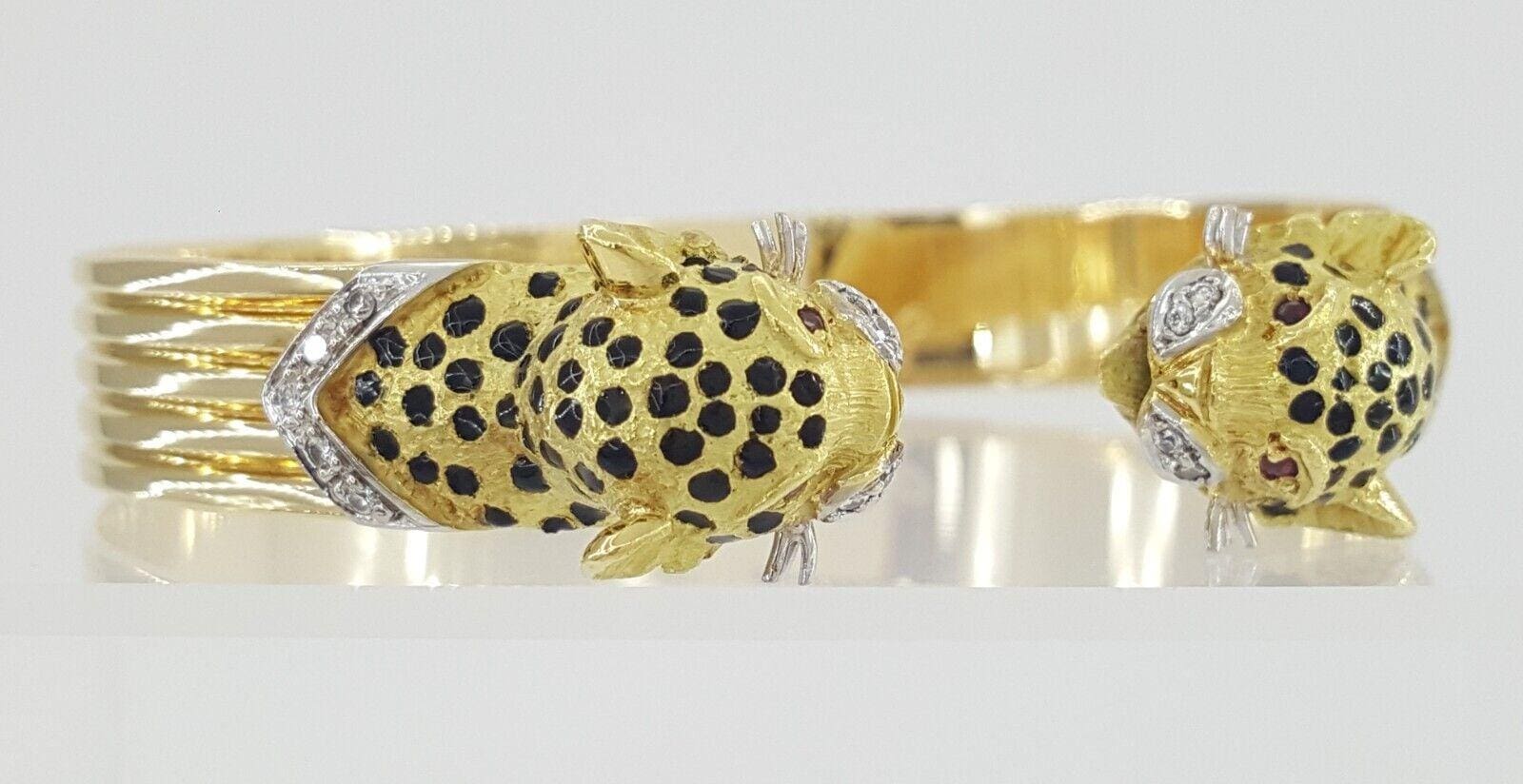 Ramon Barcelona 18K Yellow Gold Leopard Diamond & Ruby Bangle 30.6 Grams