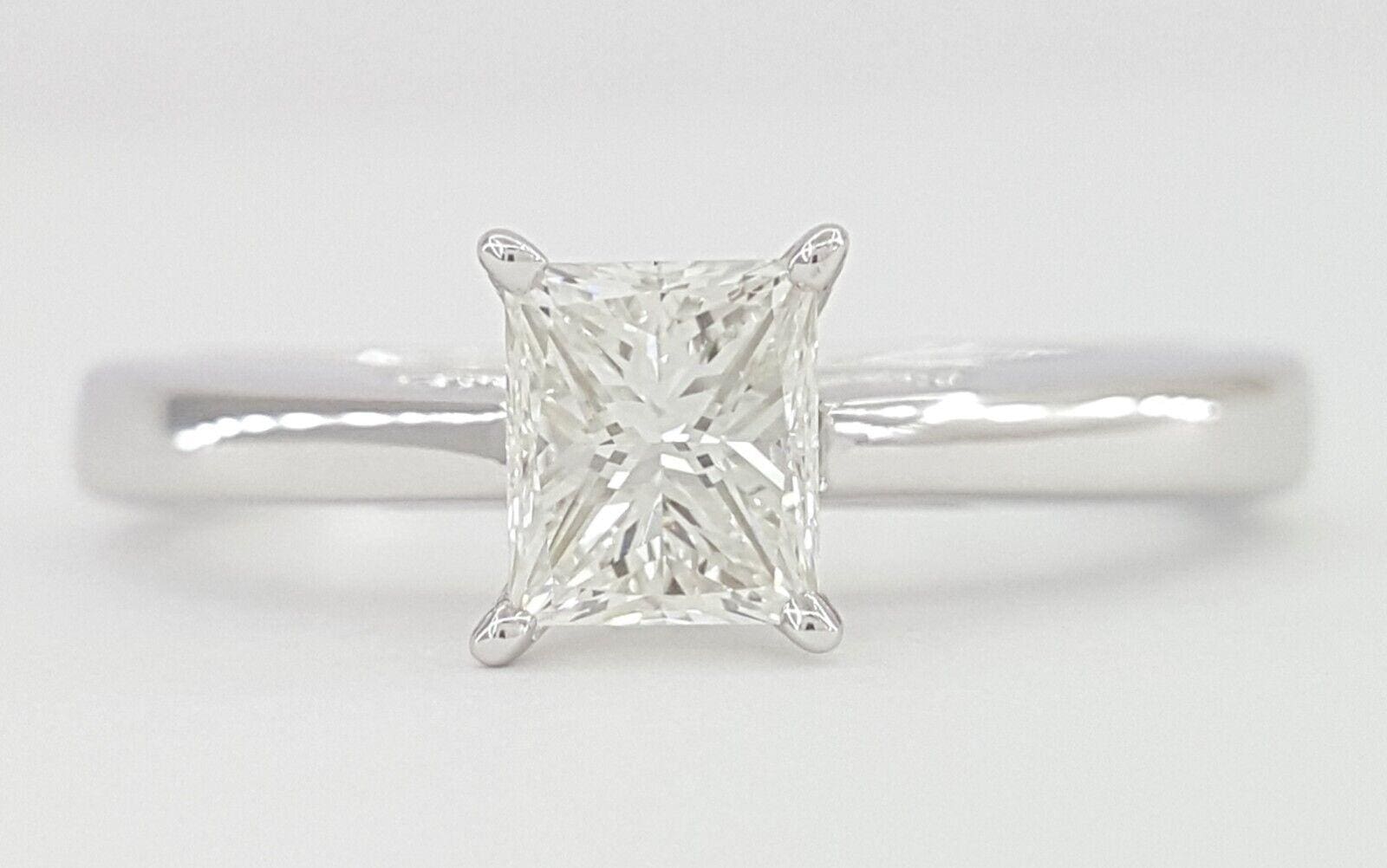 You are Purchasing a 0.6 ct Princess Brilliant Cut Diamond Solitaire White Gold Engagement Ring 18k White Gold.