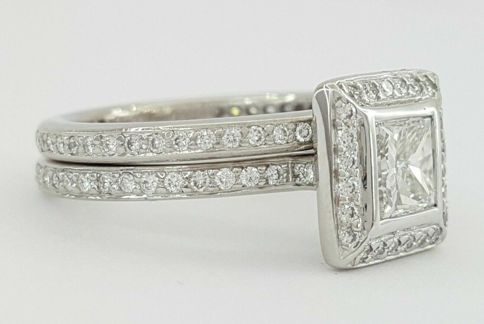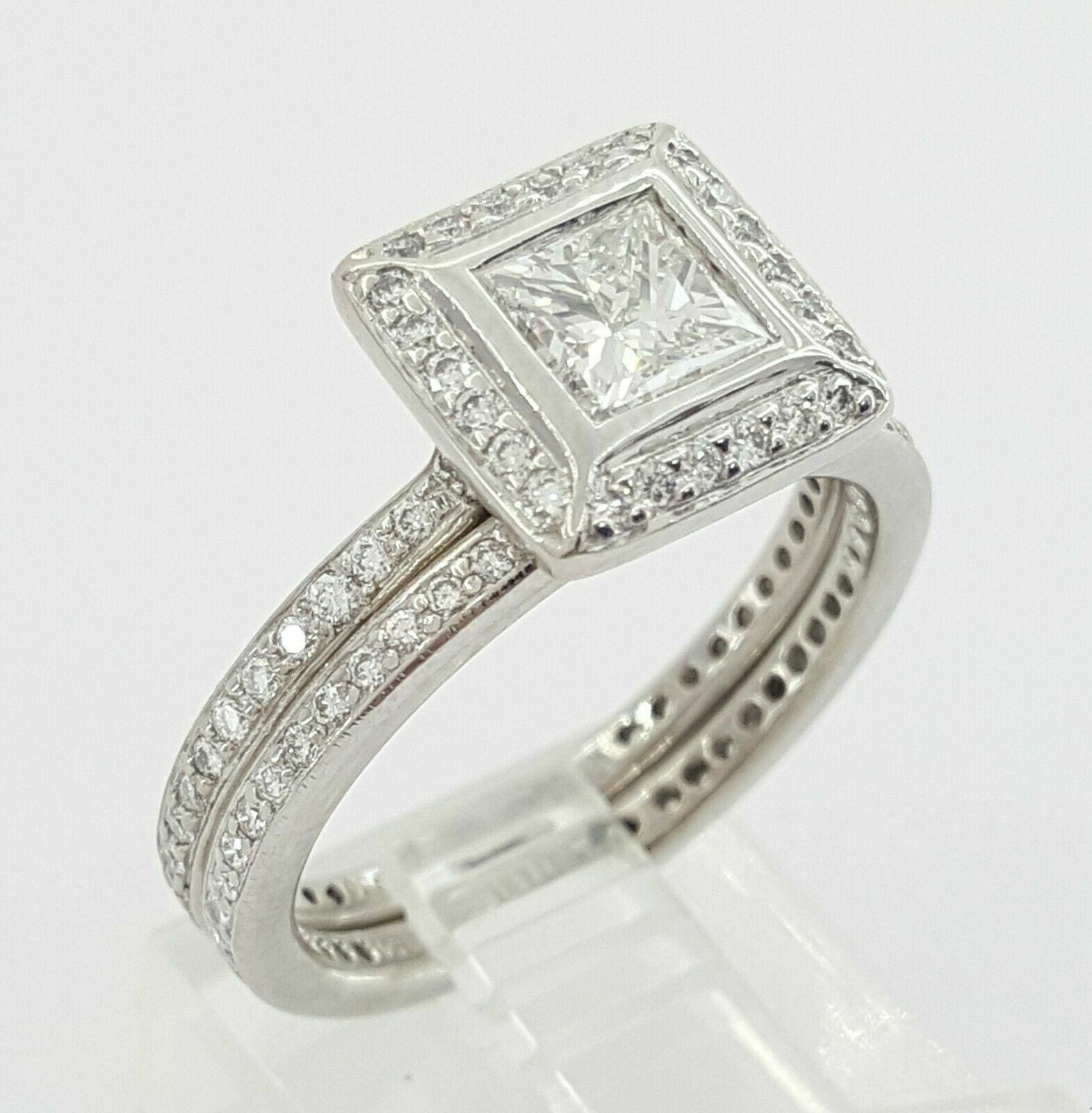 You are purchasing a RITANI 1.68 ct Total Weight Platinum Princess Cut Diamond Engagement Ring and Wedding Eternity Band Set.