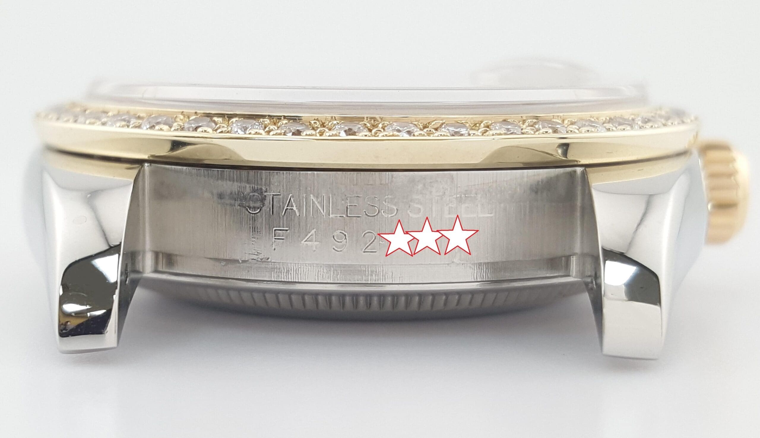 Bezel:              Aftermarket 18K Yellow Gold & Diamond