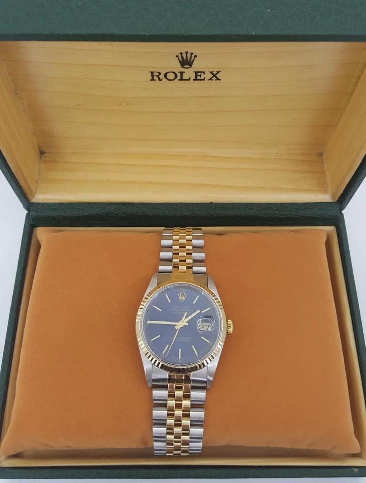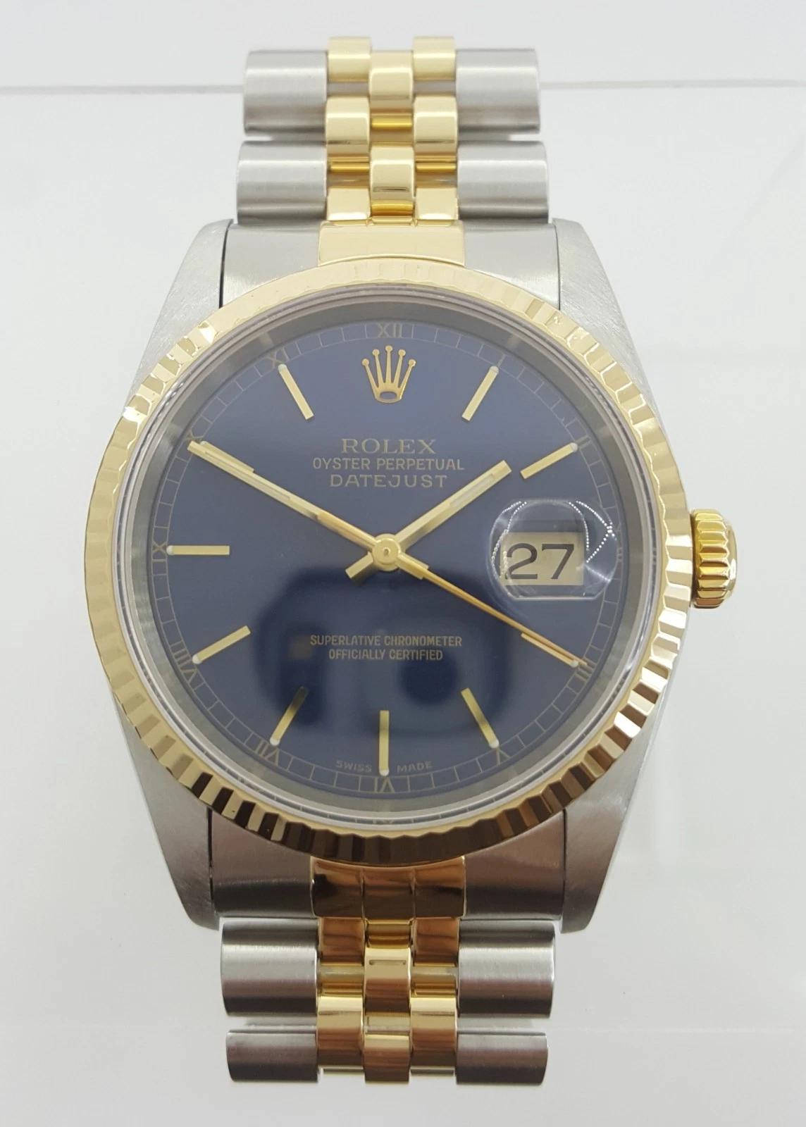 Rolex Datejust 16233 36 mm 18k Yellow & SS Jubilee Blue Sunburst Dial Watch 2000