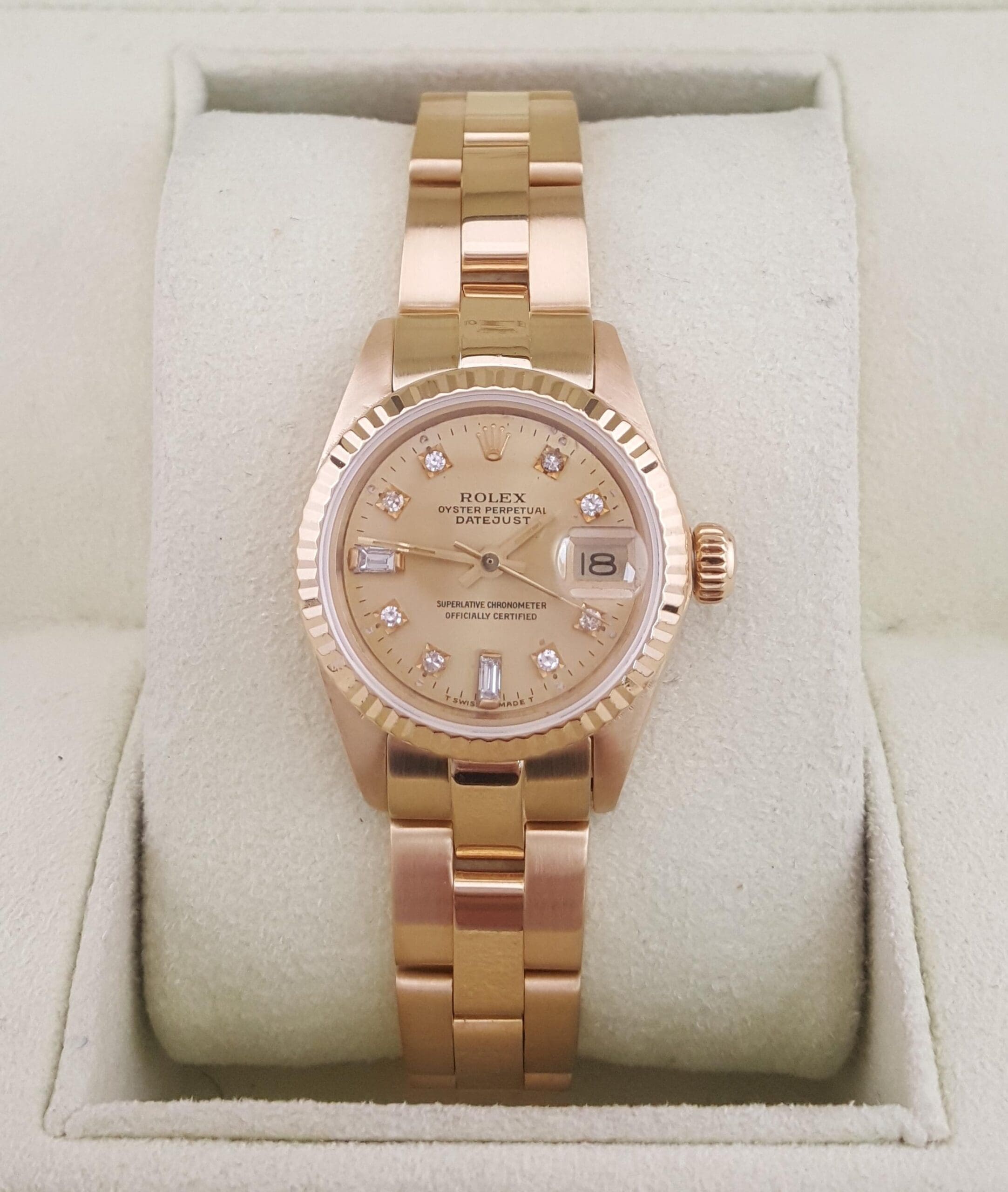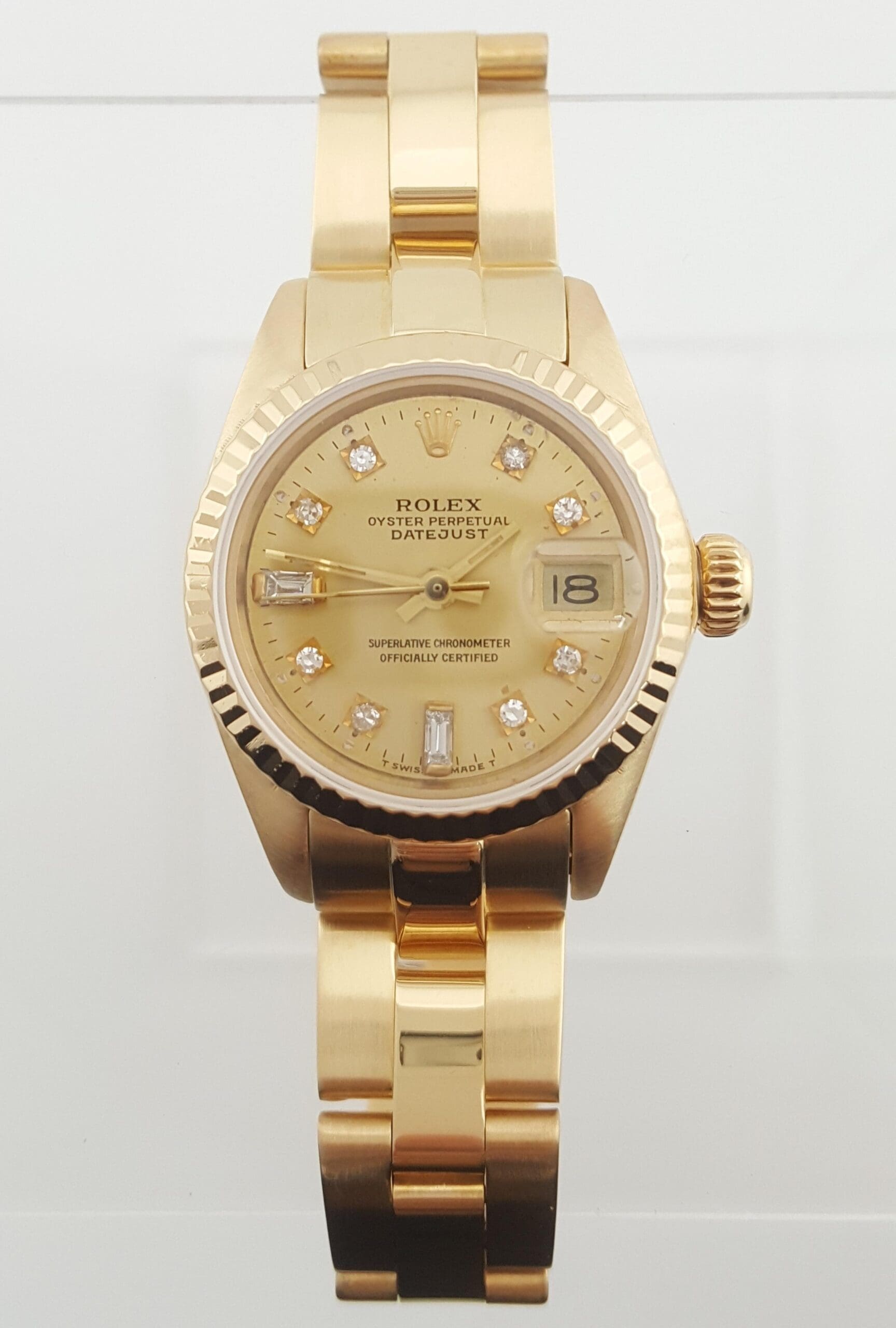 You are buying an Authentic Rolex Lady Datejust 6917 Aftermarket Diamond Dial 26 mm Box 18k Yellow Gold