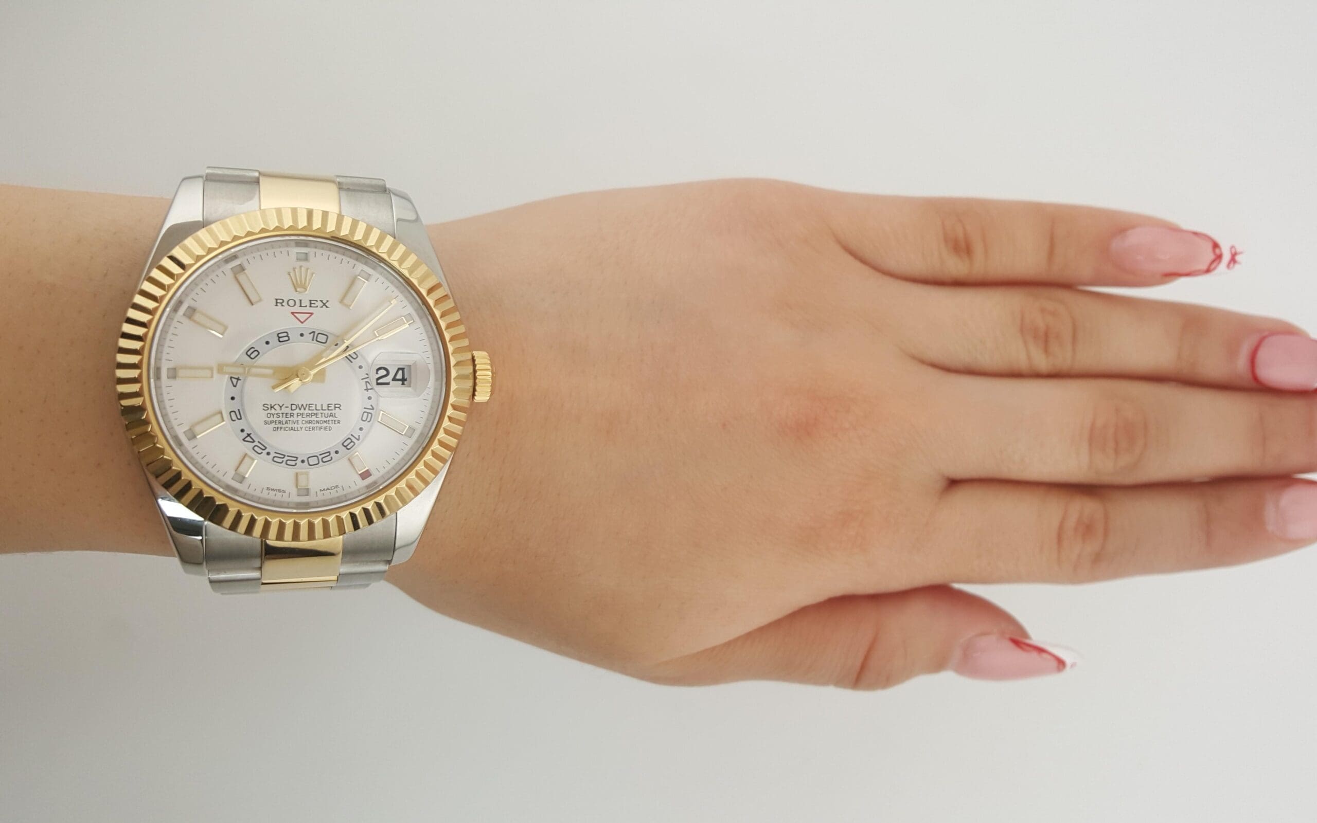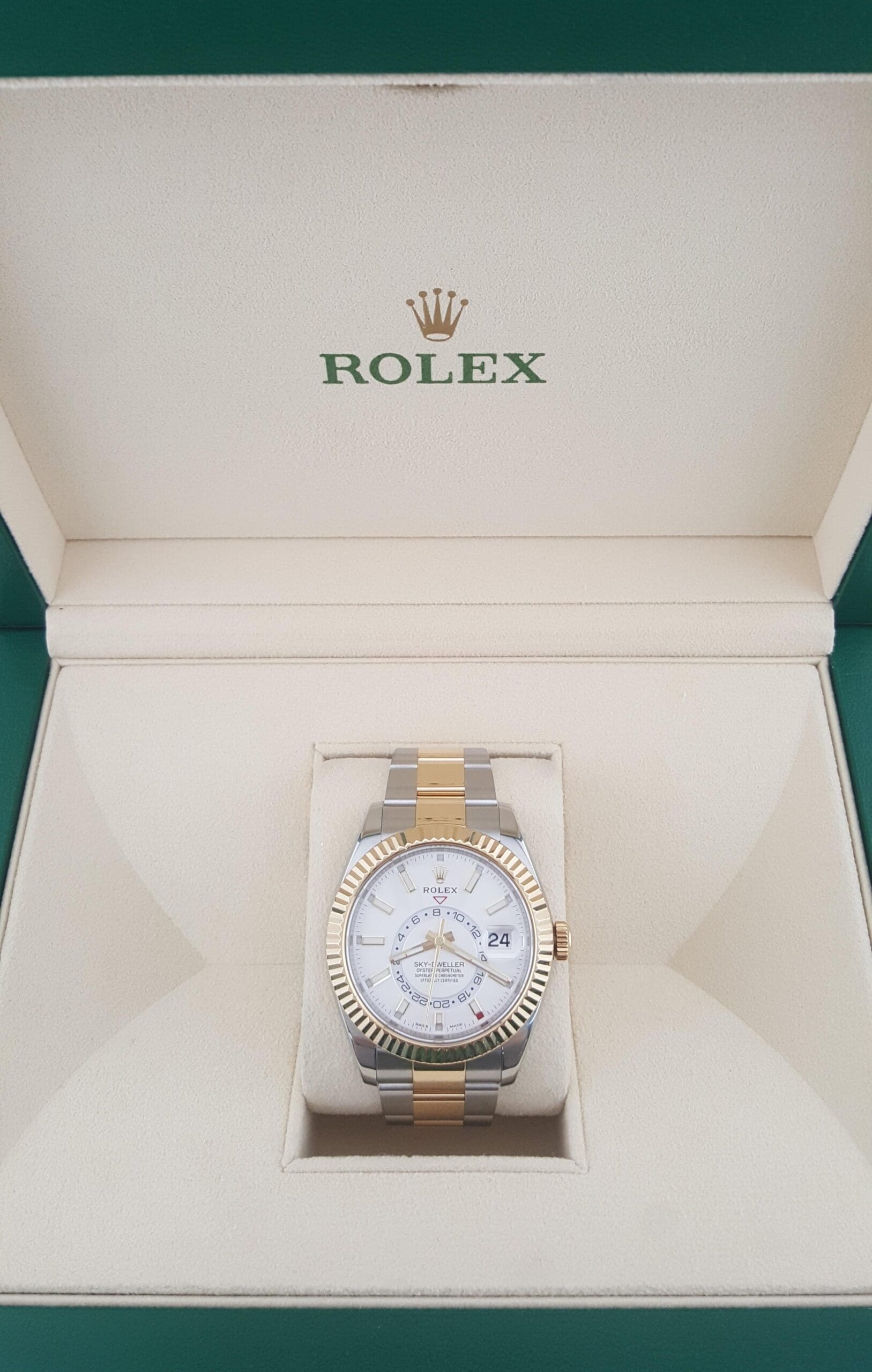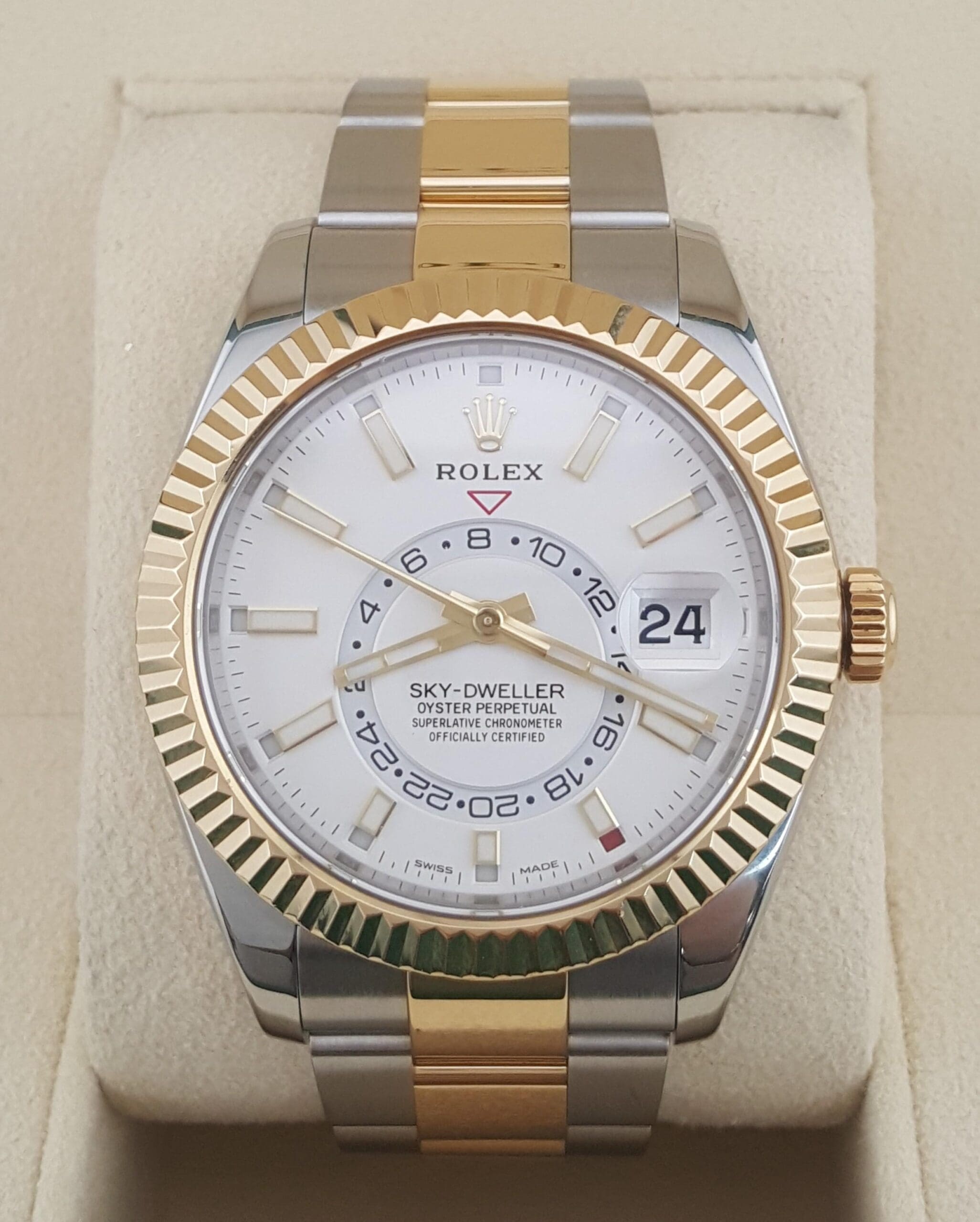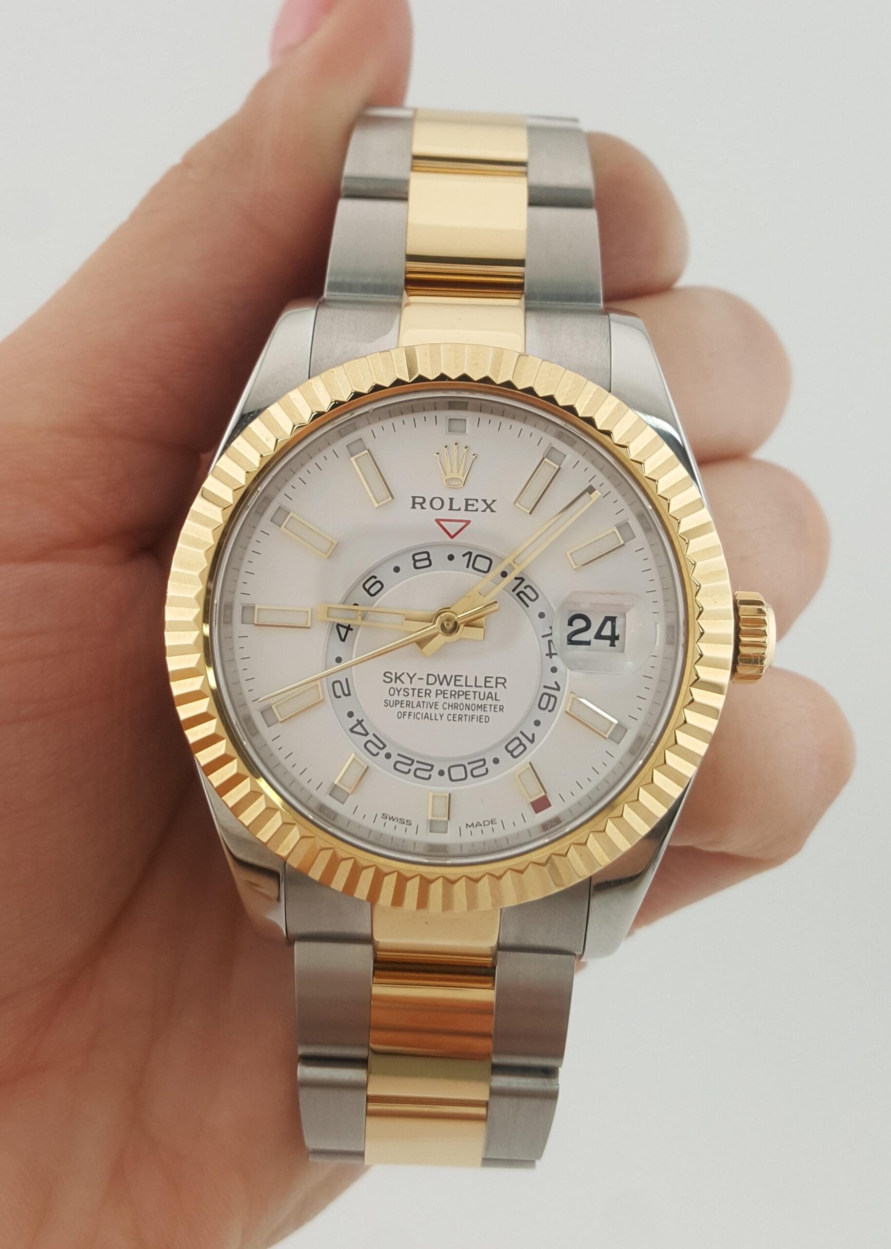 You are buying an Authentic Rolex Sky-Dweller 326933 42 mm Oyster SS & 18K Yellow Gold White Dial W/ Box