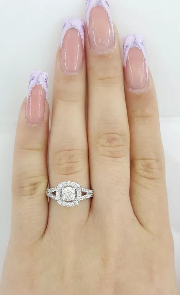 You are purchasing a 0.75 ct Round Brilliant Cut Diamond Halo 14k White Gold Engagement Ring.