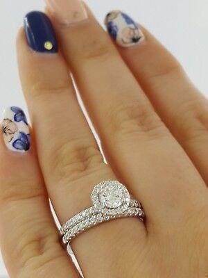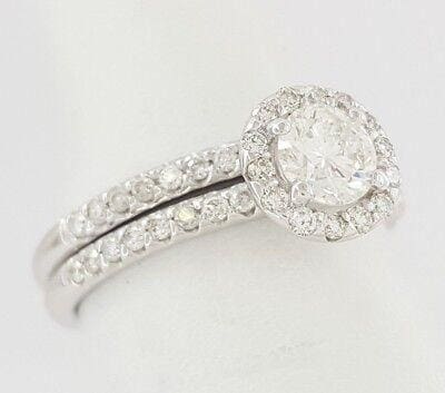 You are Purchasing a 1 ct Total Weight 14K White Gold Round Brilliant Cut Diamond Halo Engagement Ring and Wedding Band Set.