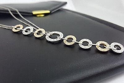 You are buying a 18k White & Rose Gold Overlapping Circles Round Brilliant Cut Diamond Double Chain.