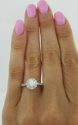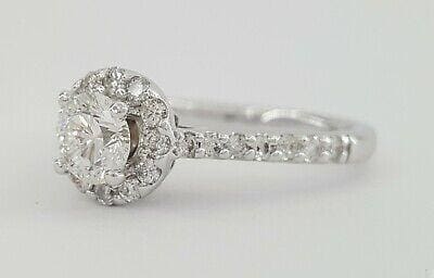 Round Cut Diamond Halo Engagement Ring 1.07 ct 14K White Gold GIA G / VS2 6,000