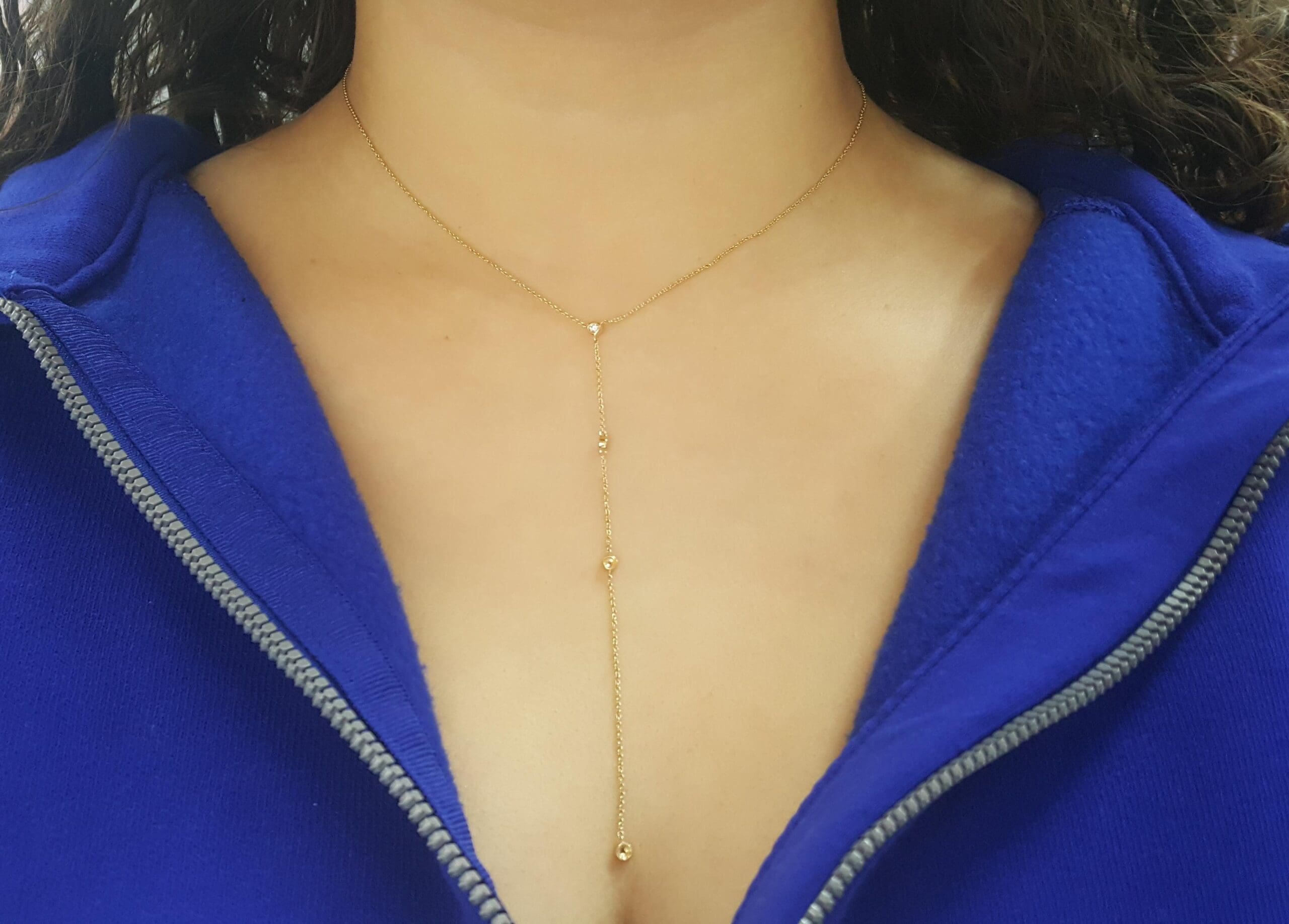 You are Buying a 0.12 ct Round Brilliant Cut Diamond Lariat Drop Necklace 14K Yellow Gold 16"