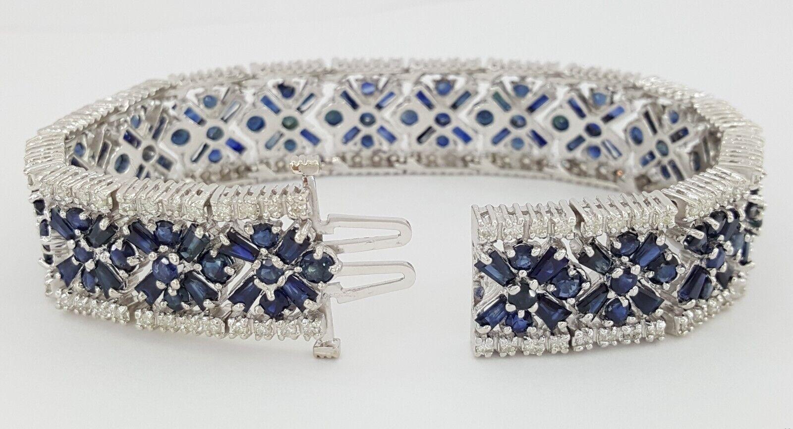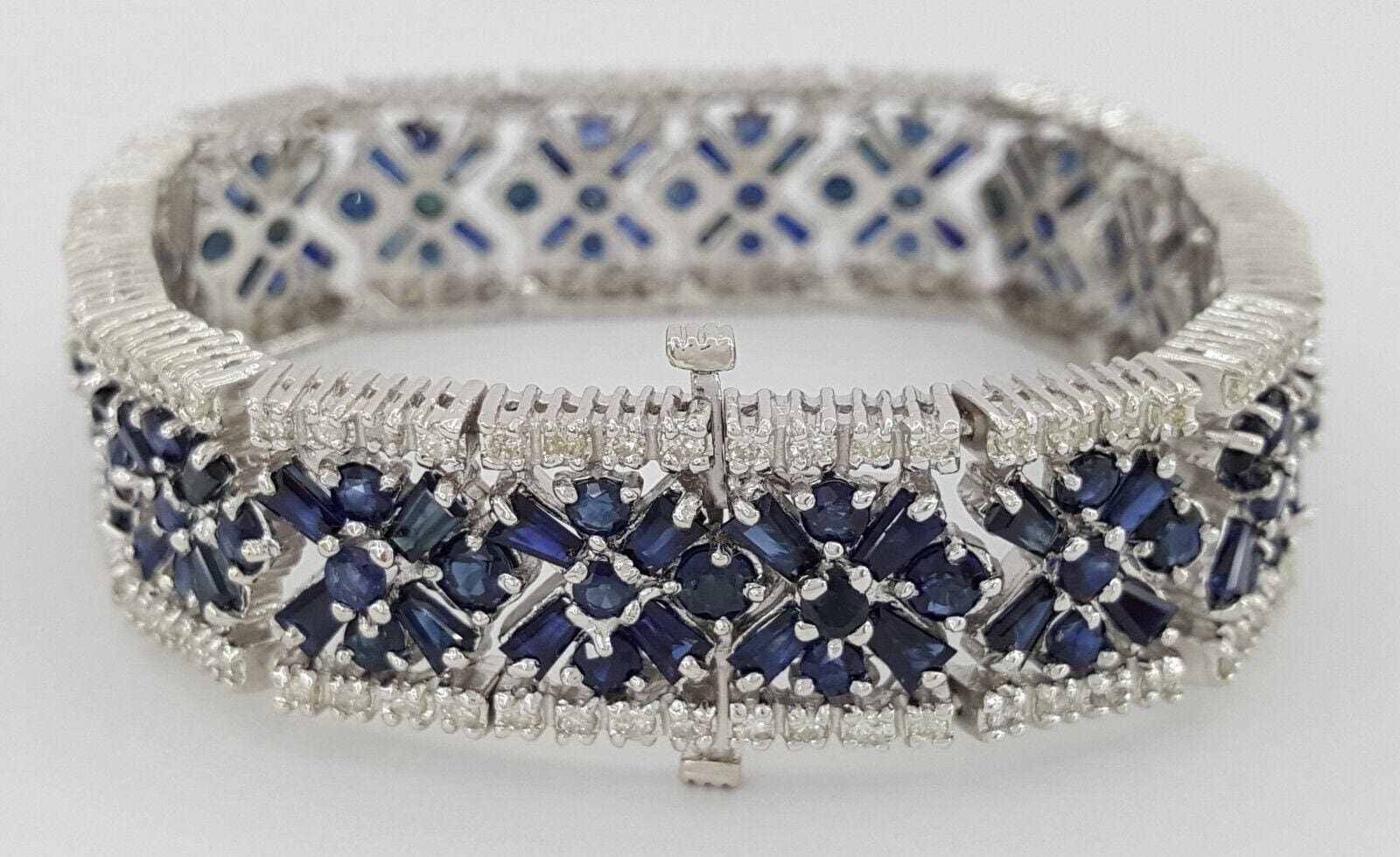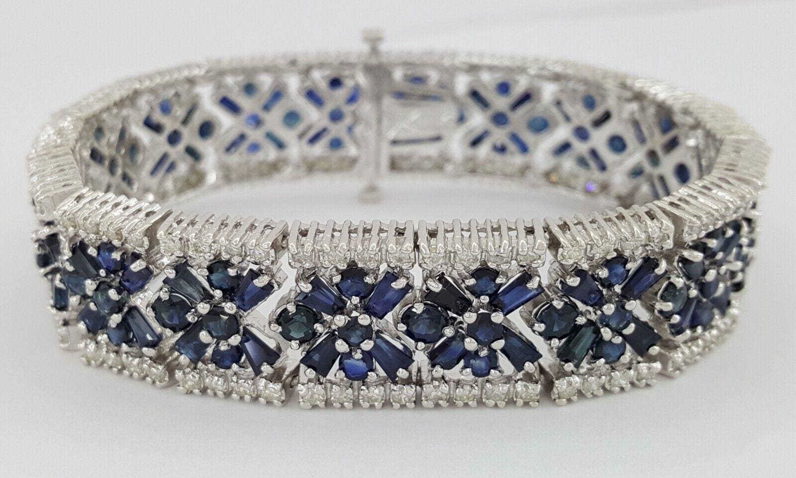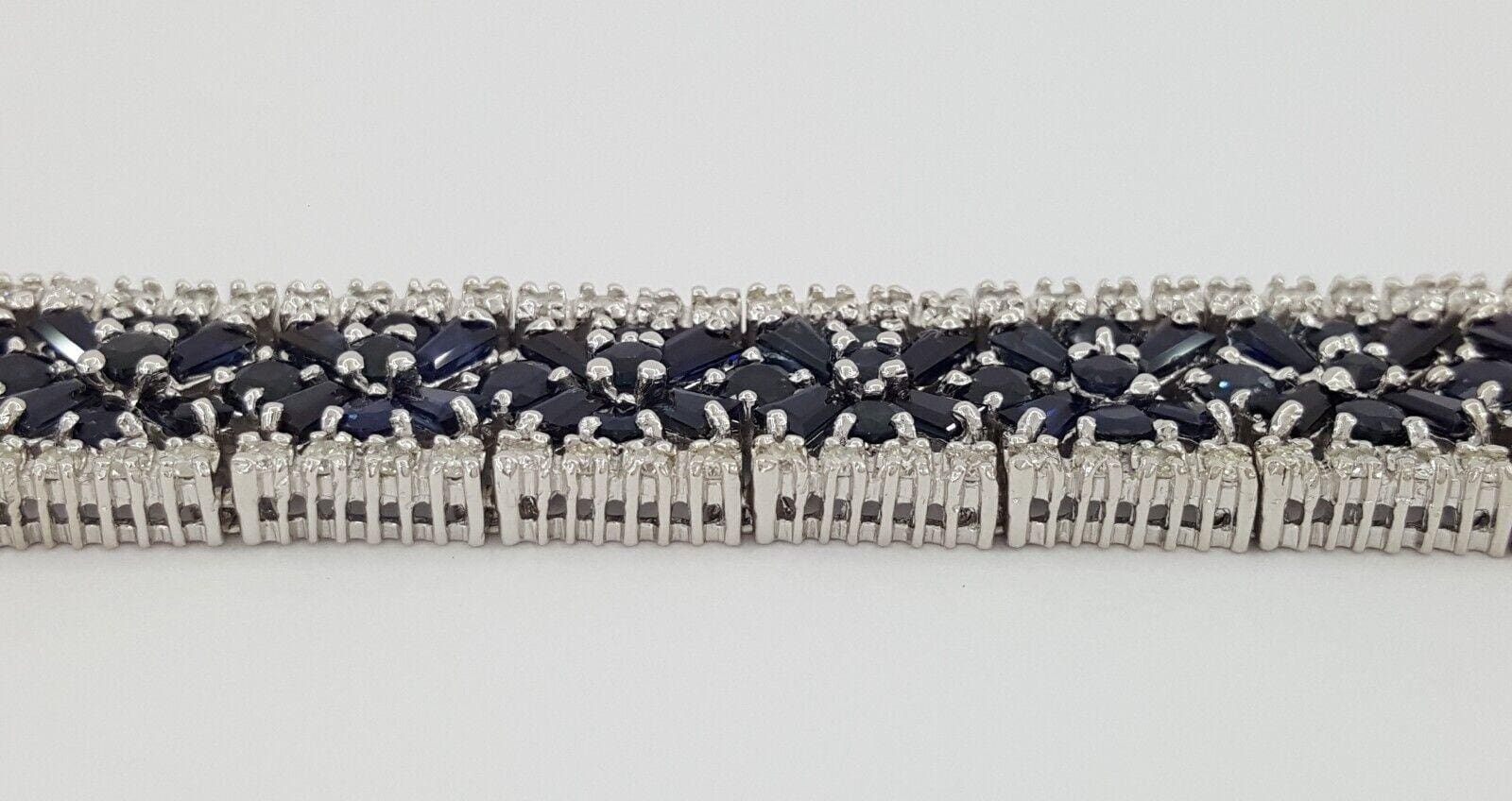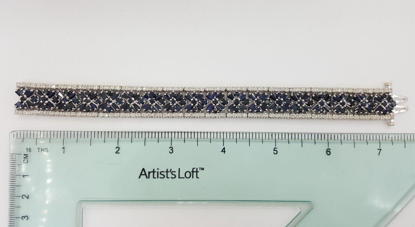 Round Diamonds & Blue Sapphires 24.6 ct 14K White Gold Bracelet 49.2 Grams 7 1/8