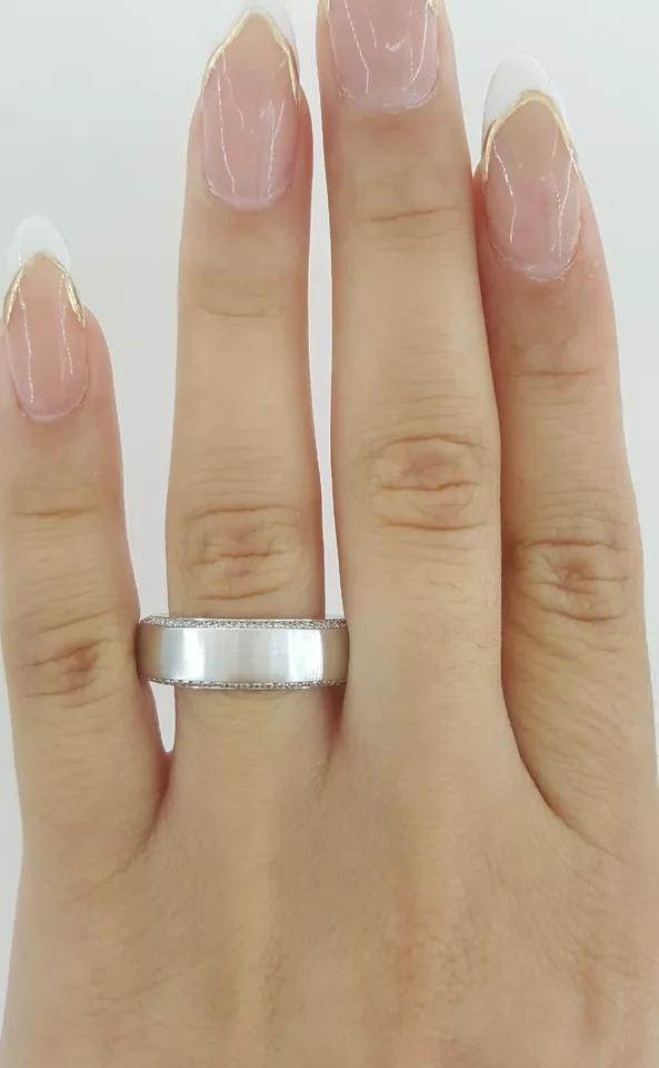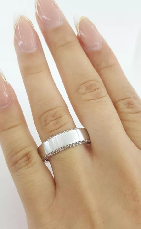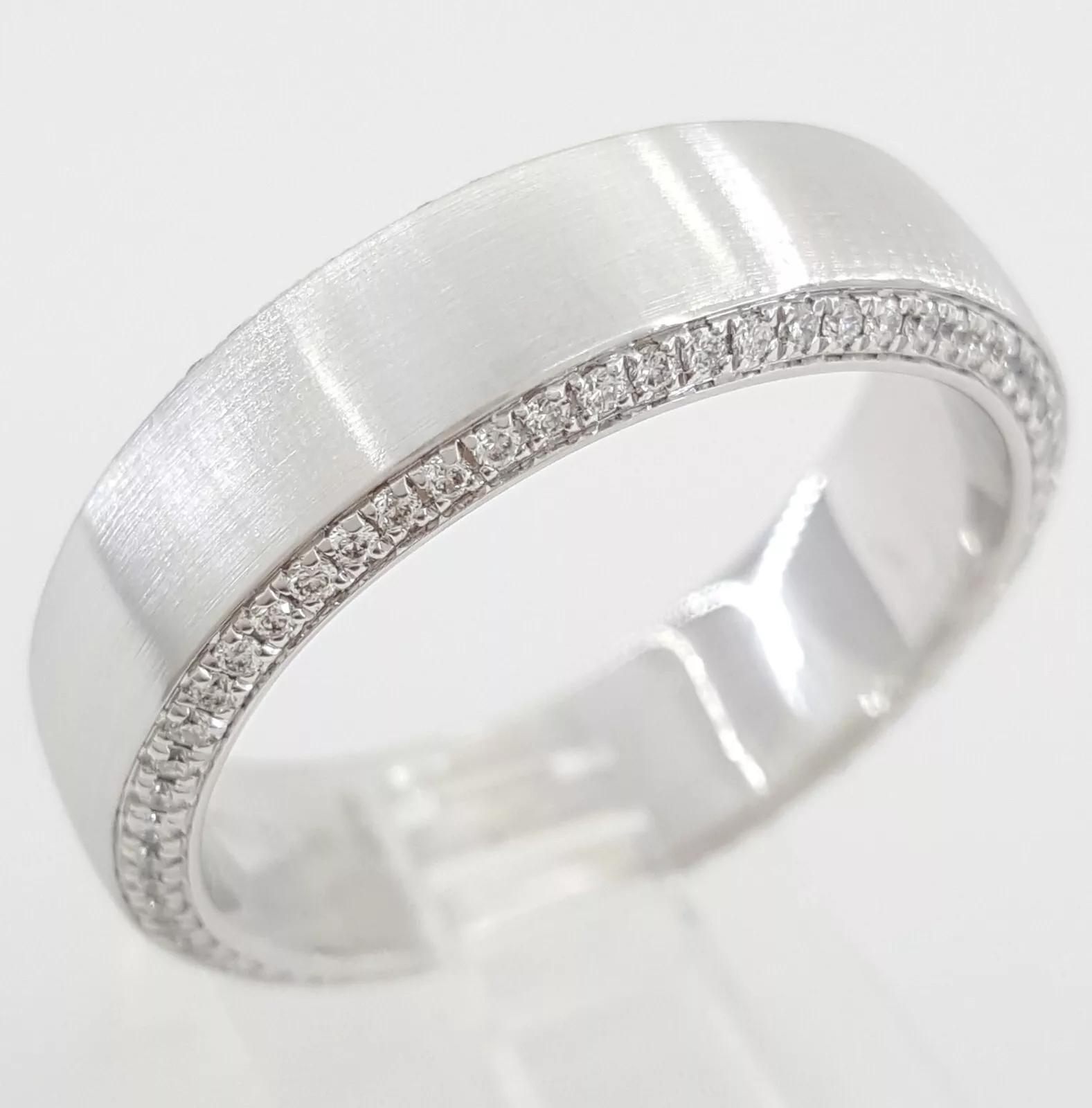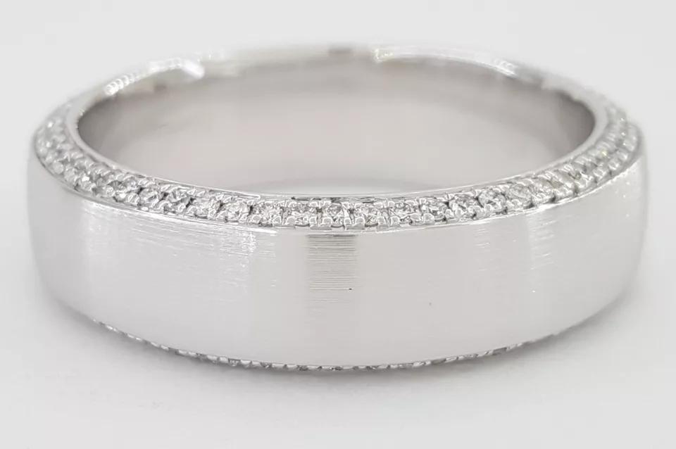 The ring weighs 5.5 grams, size 10, 6.5 mm Wide, 2.1 mm Thick, there are 0.52 ct of Natural Round Brilliant Cut diamonds, F-H in color, VS-SI in clarity.