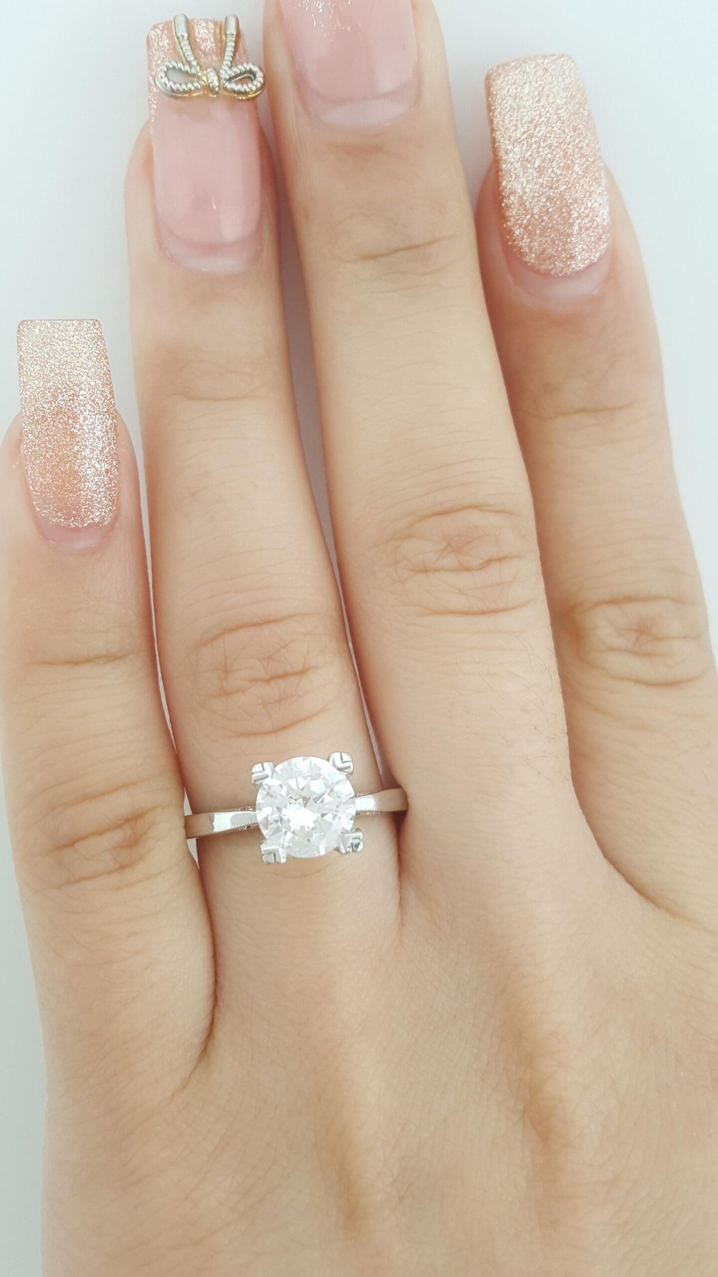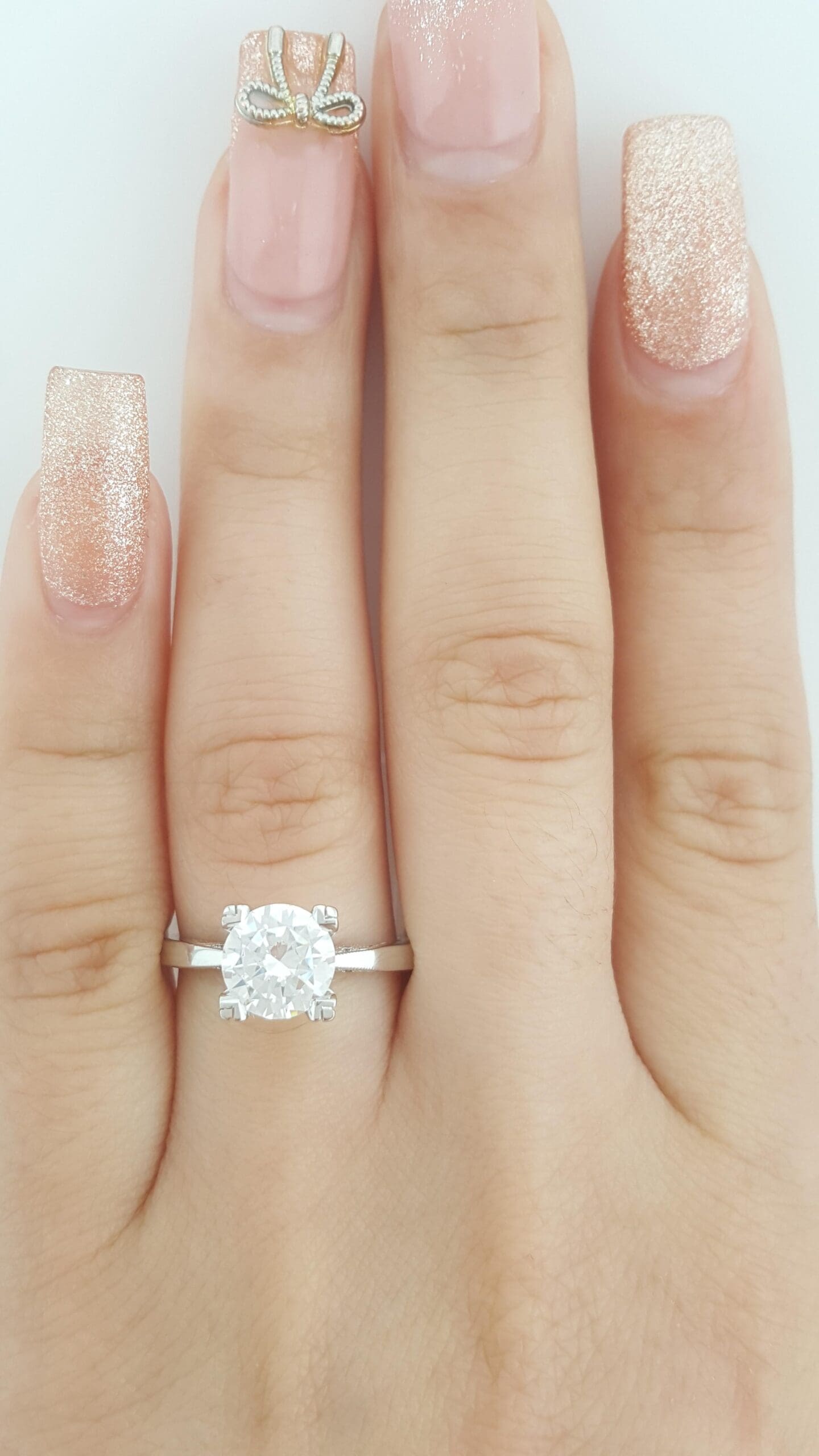 The ring weighs 6.5 grams, size 6.5, the center stone is a cubic zirconia display stone, the mounting will fit a diamond between 1.7-2.2 ct or a stone that's 7.5-8.2 mm in diameter.