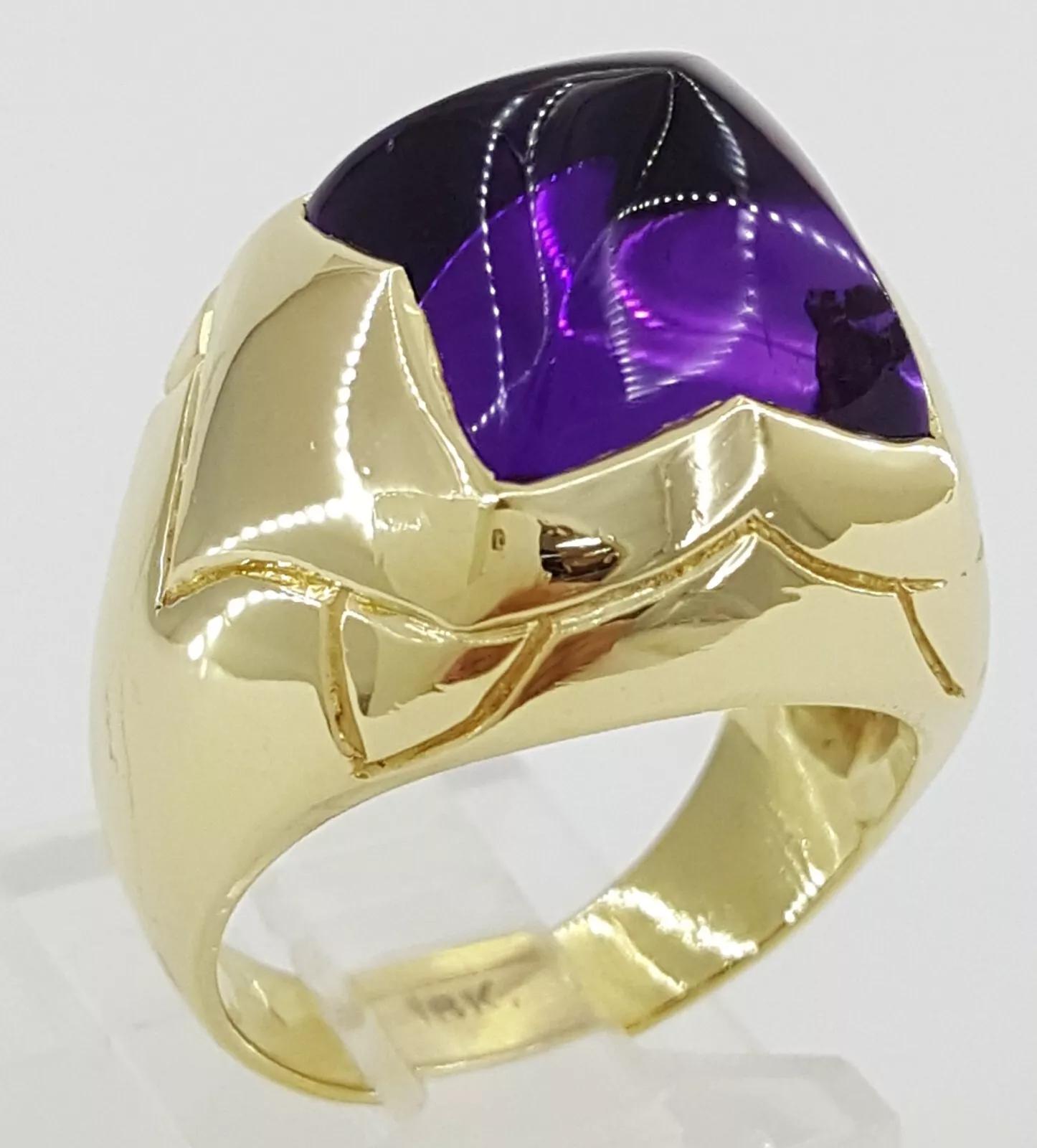 Sugarloaf Amethyst Statement Ring 18k Yellow Gold 17.6 Grams